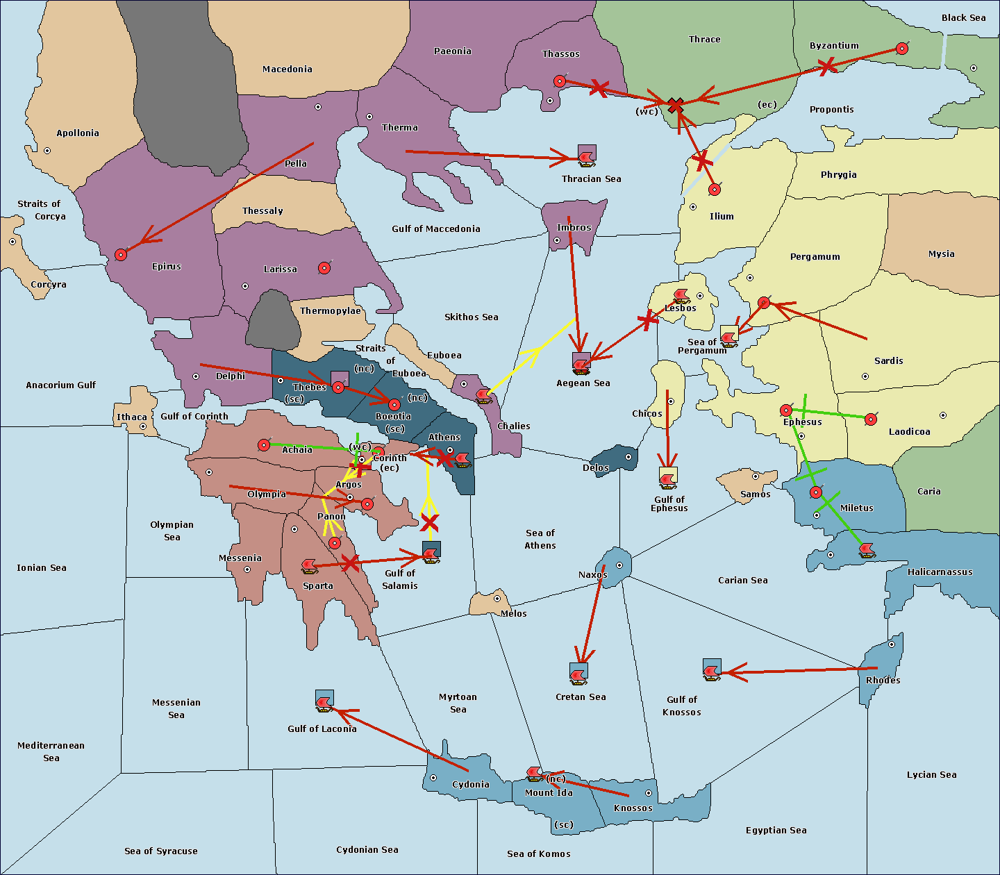 The fleet at Cydonia move to Myrtoan Sea.