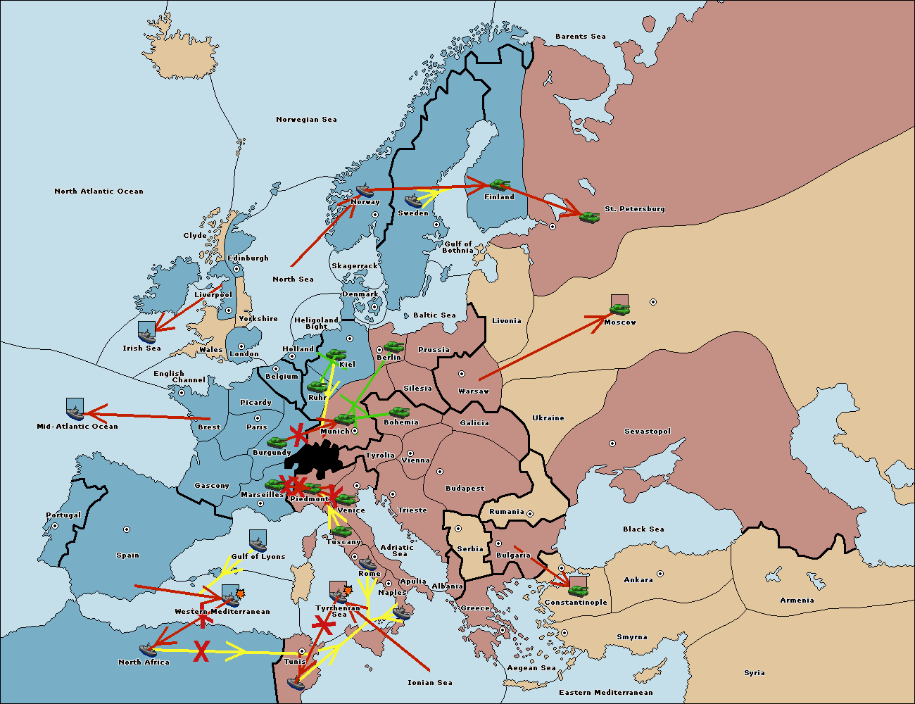 The fleet at North Africa move to Western Mediterranean.
