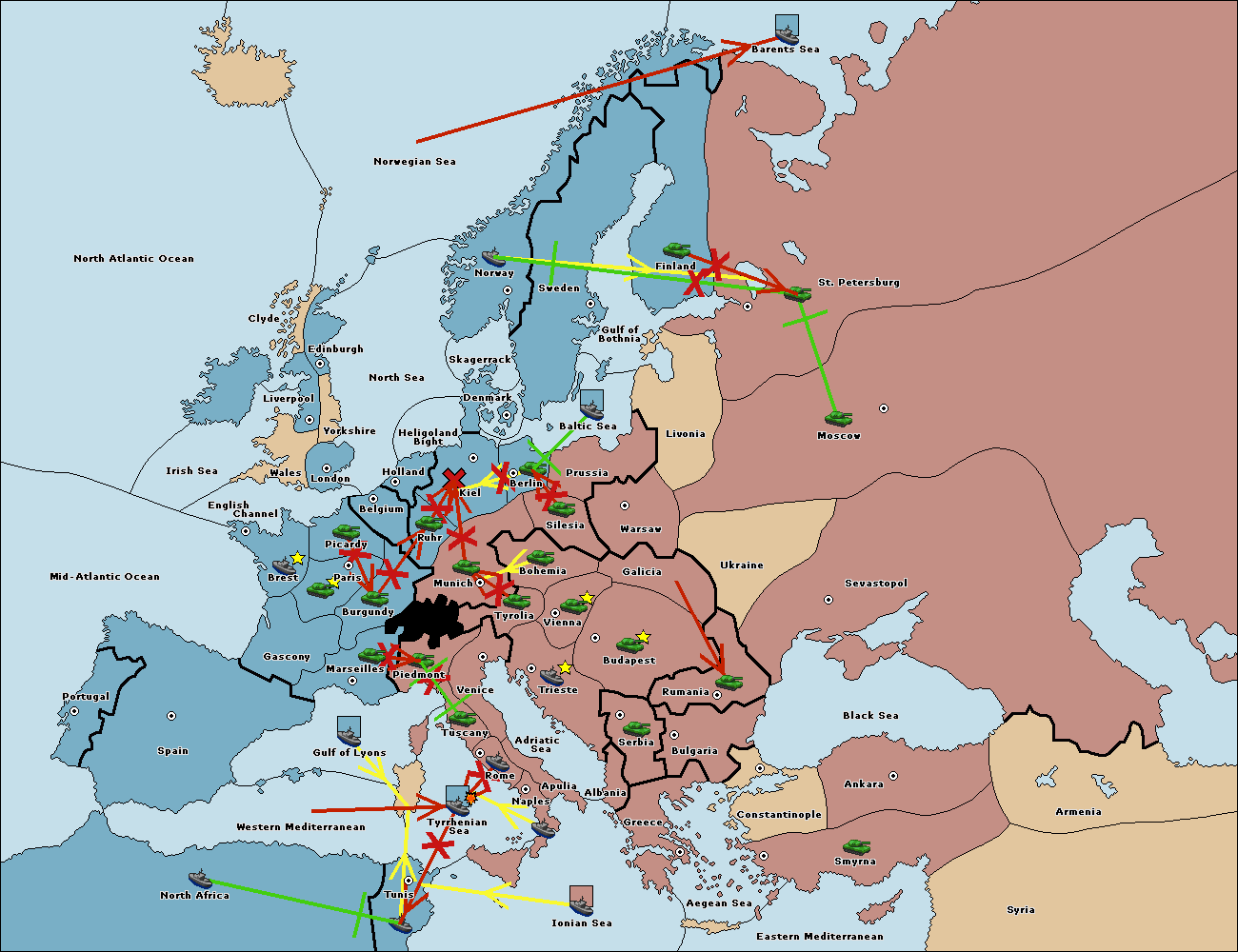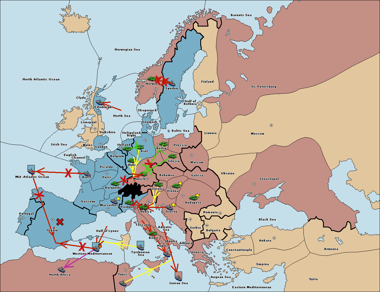 The fleet at Spain (South Coast) support hold to Gulf of Lyons.
