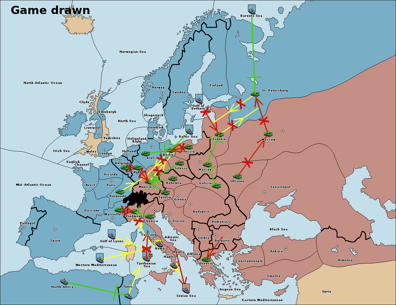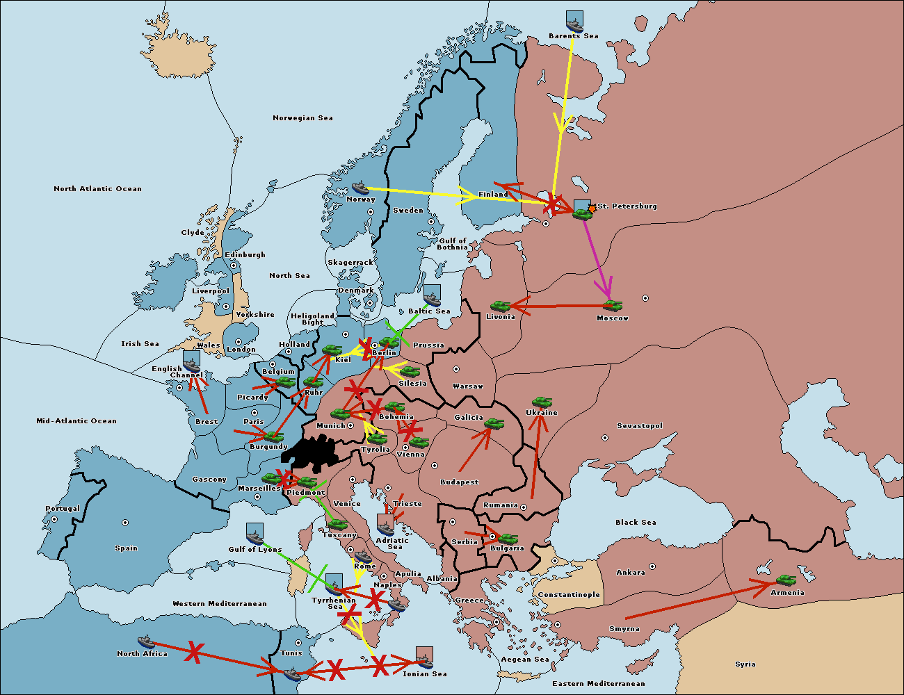 The fleet at Tunis support move to Tyrrhenian Sea from Ionian Sea.