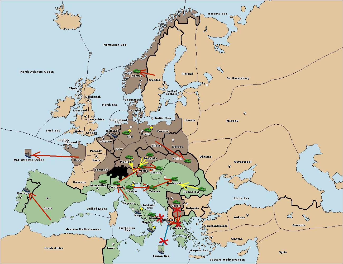 The army at Bohemia support move to Tyrolia from Piedmont.