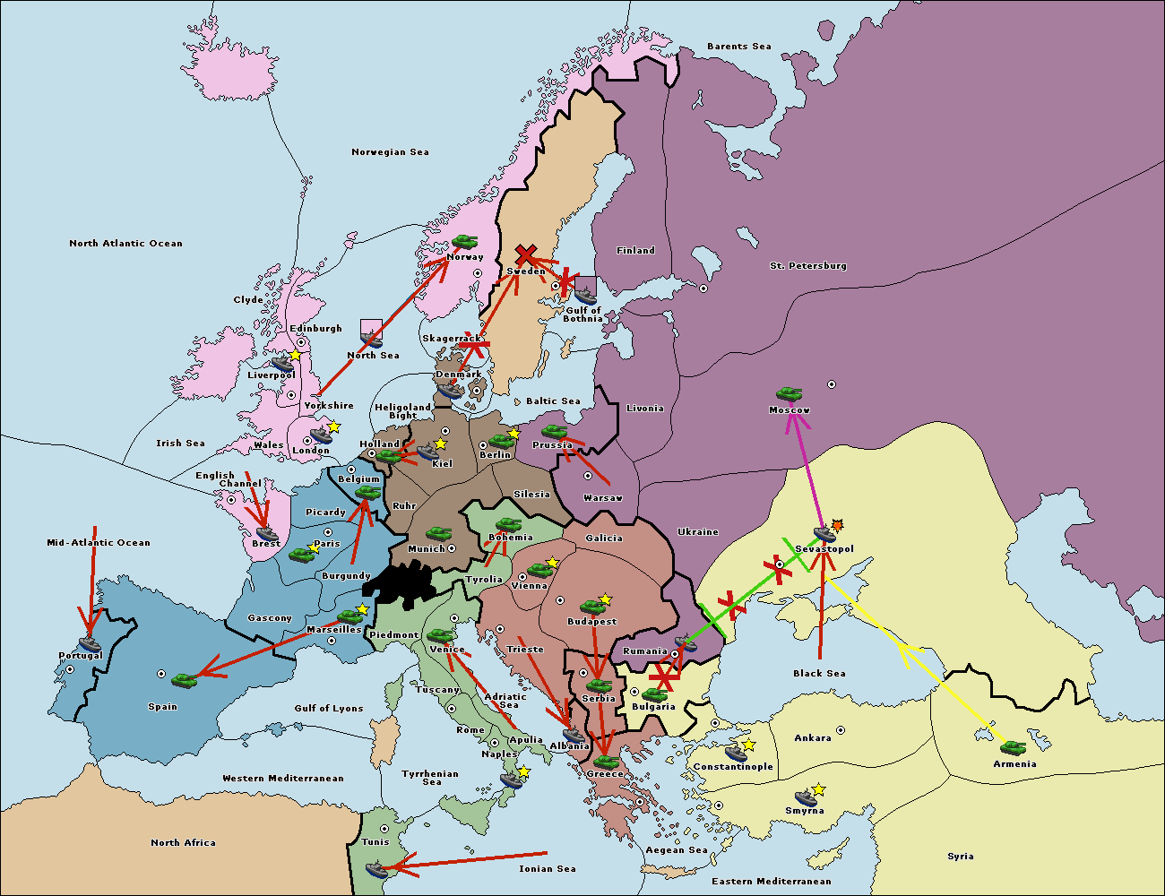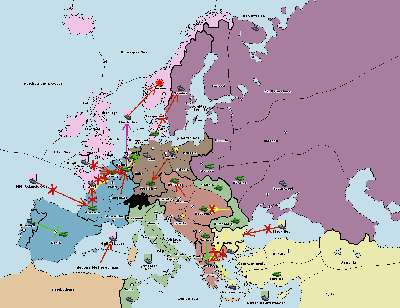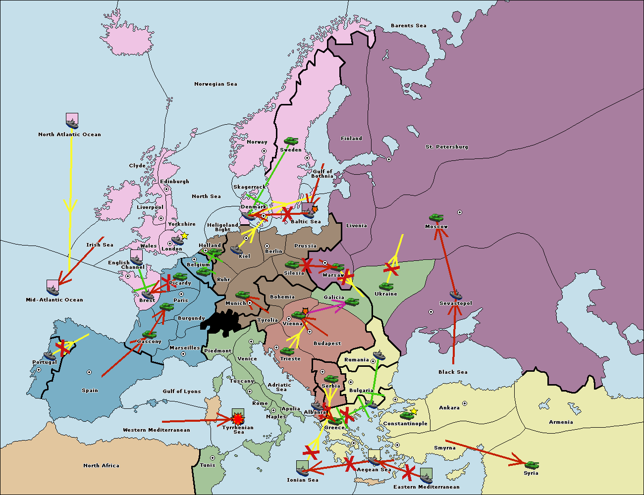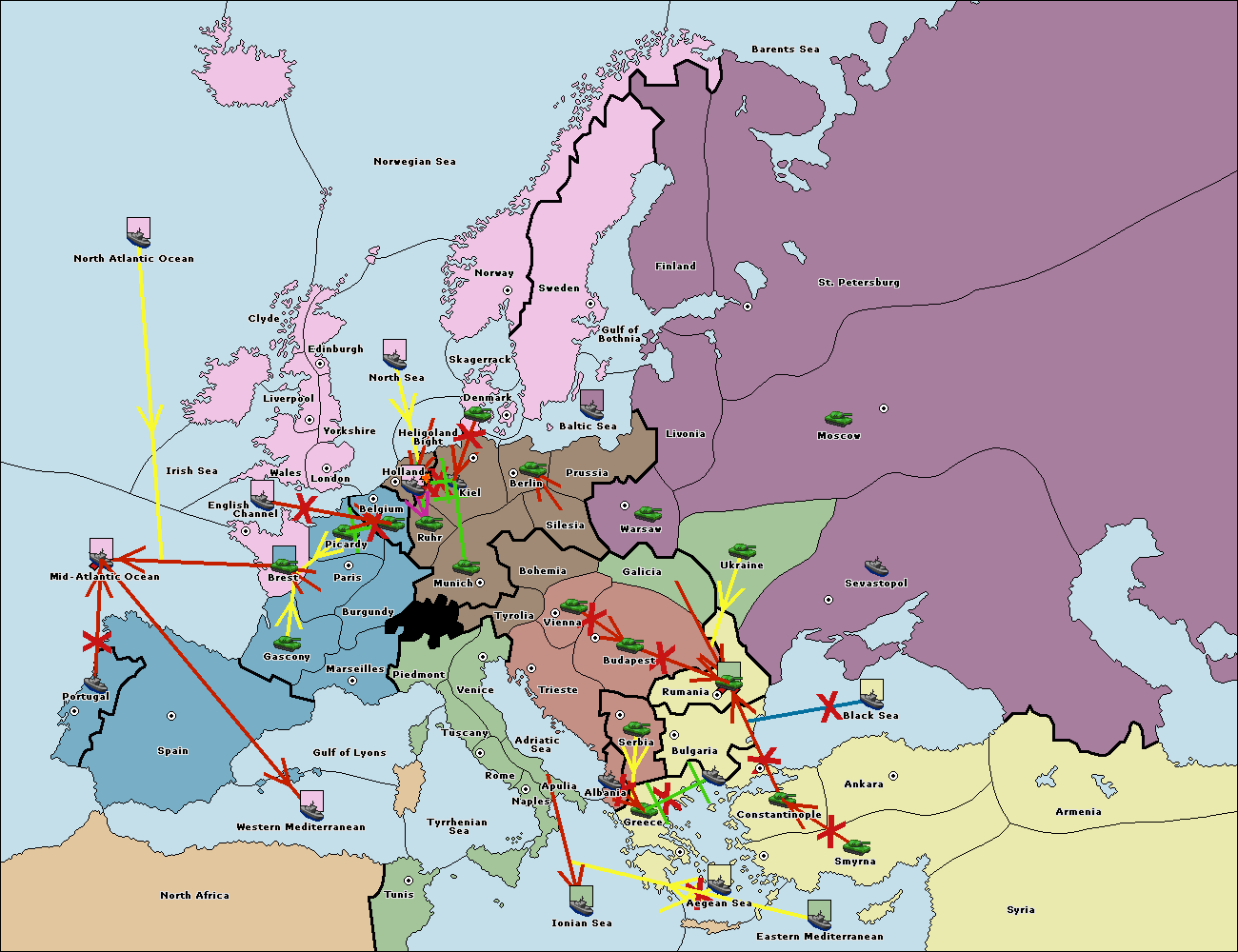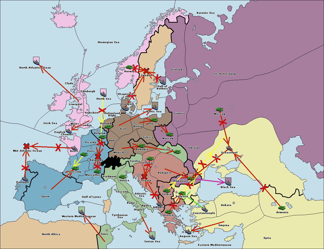 The fleet at Bulgaria (South Coast) move to Greece.