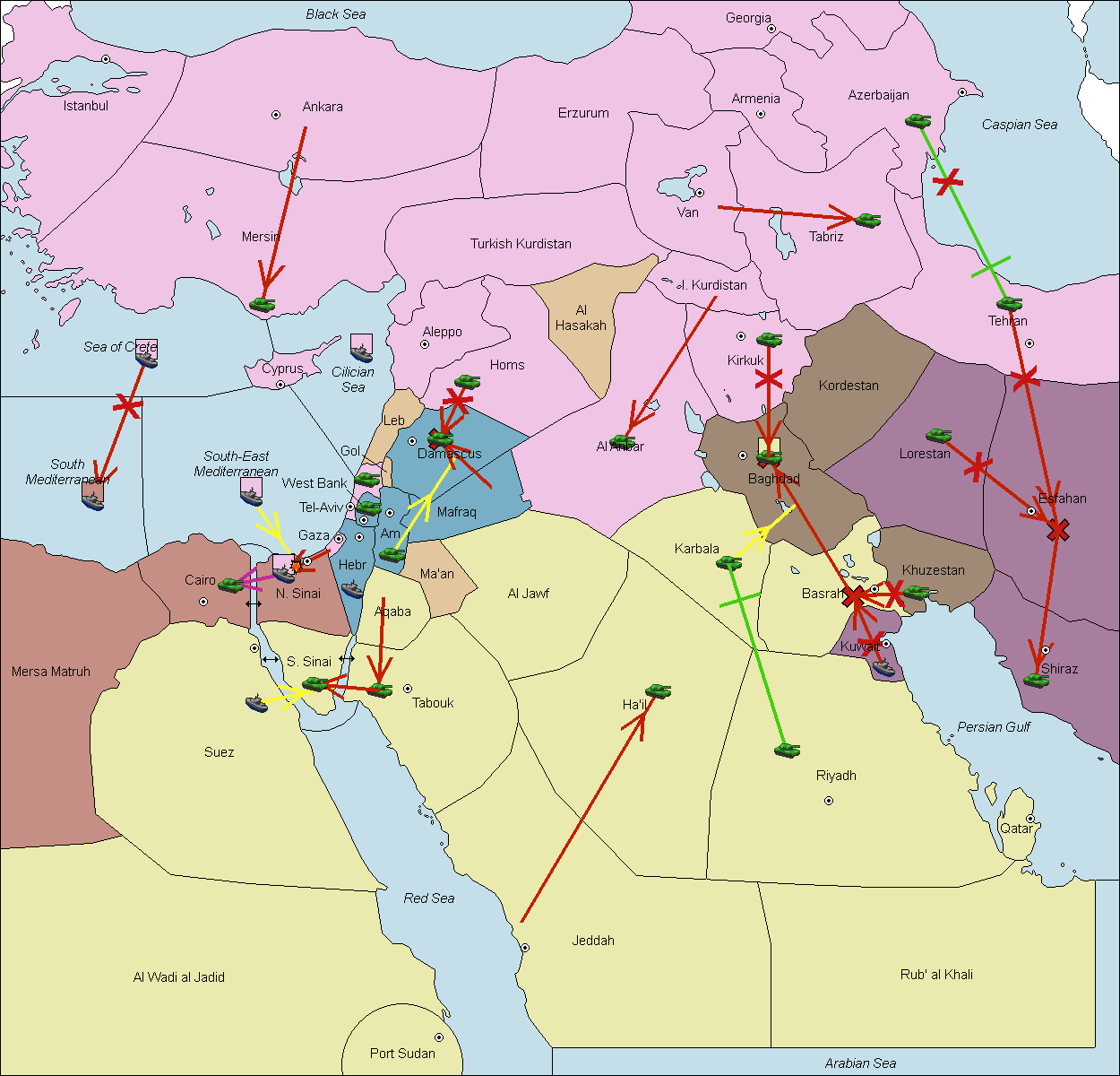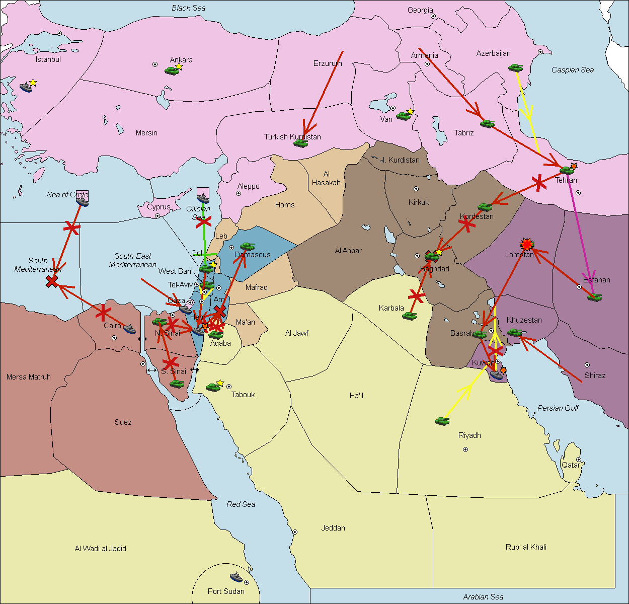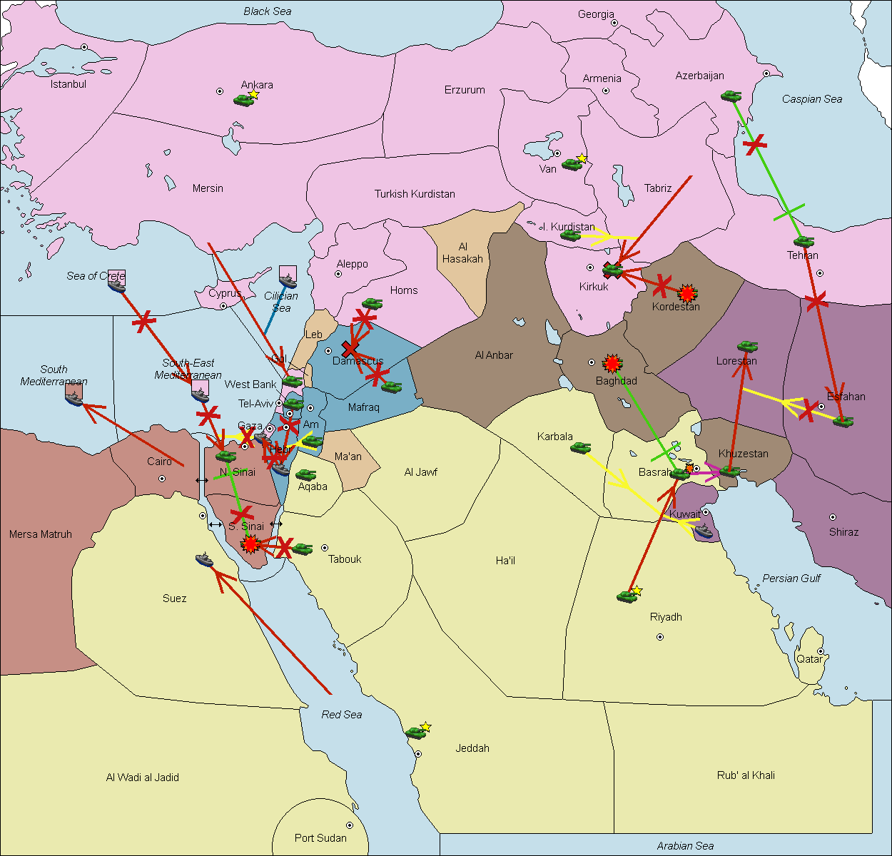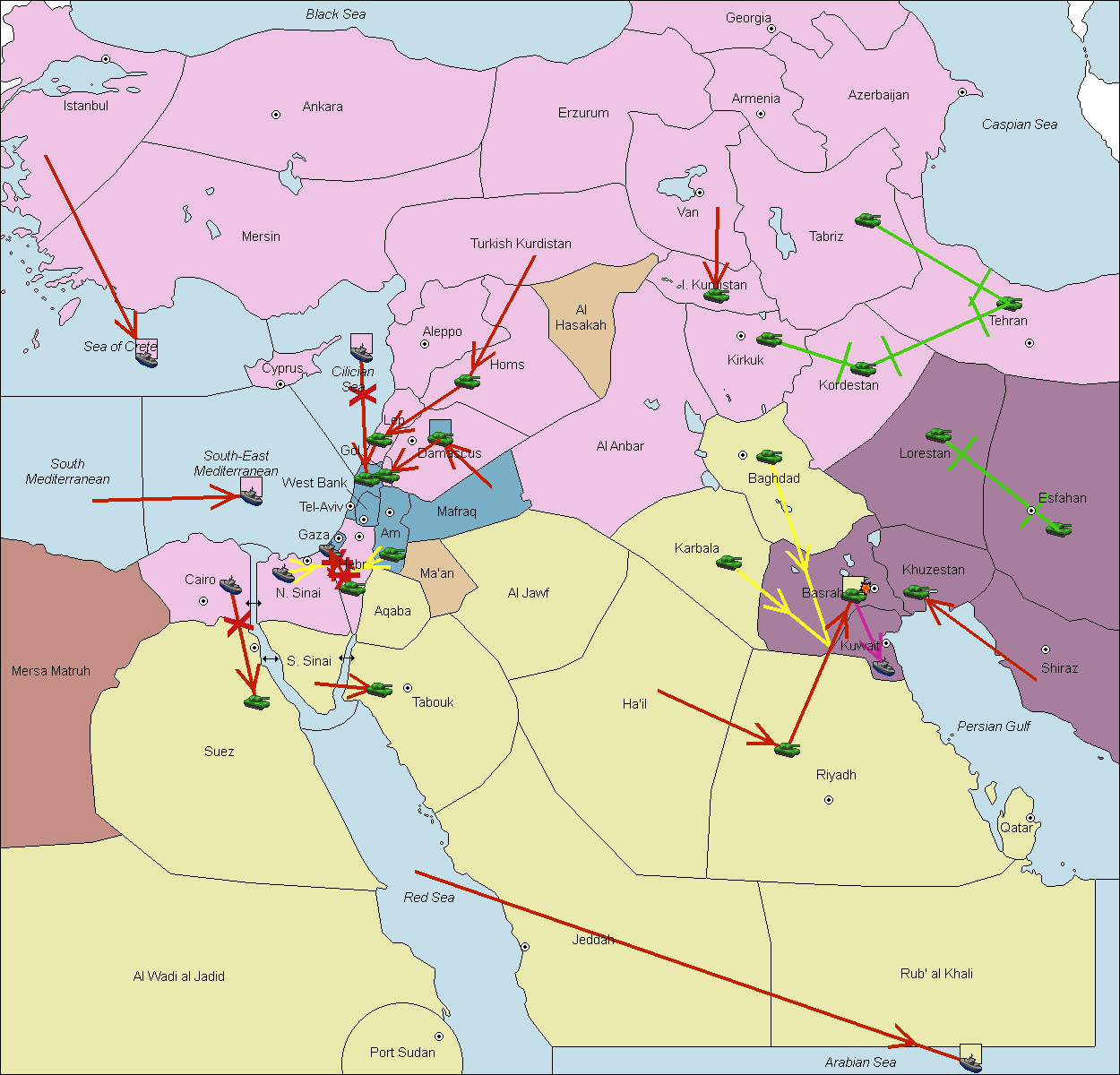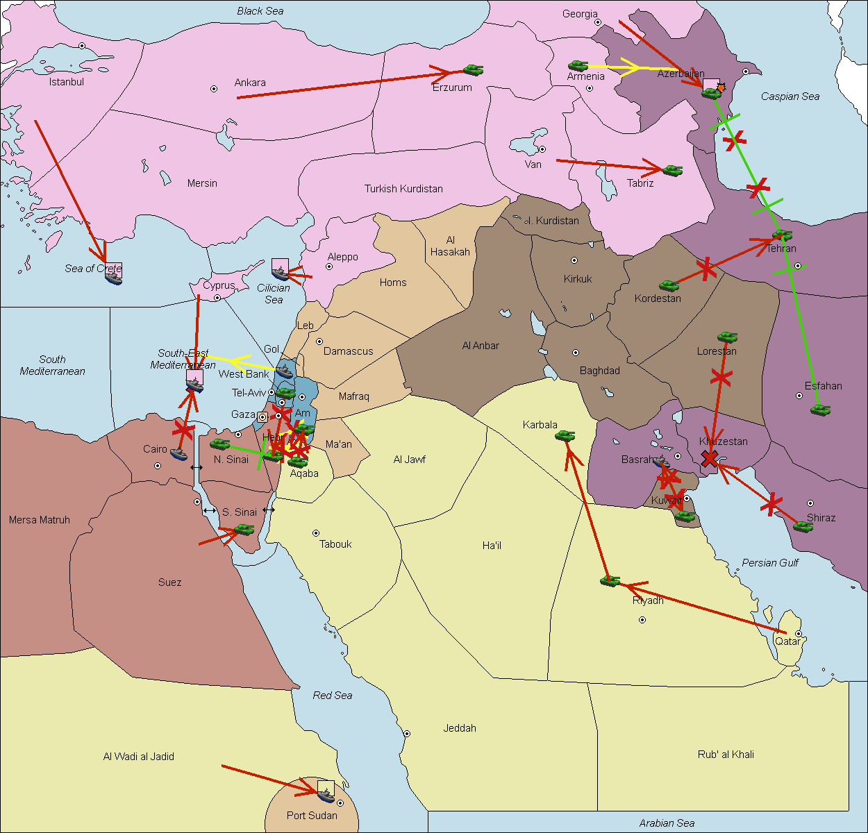 The fleet at Cilician Sea support move to Tel-Aviv from Lebanon.