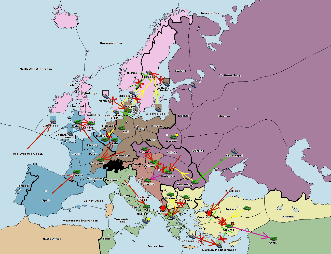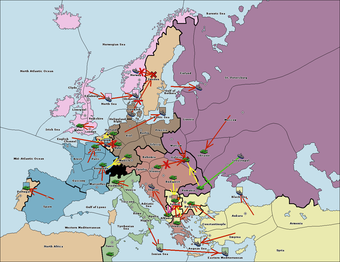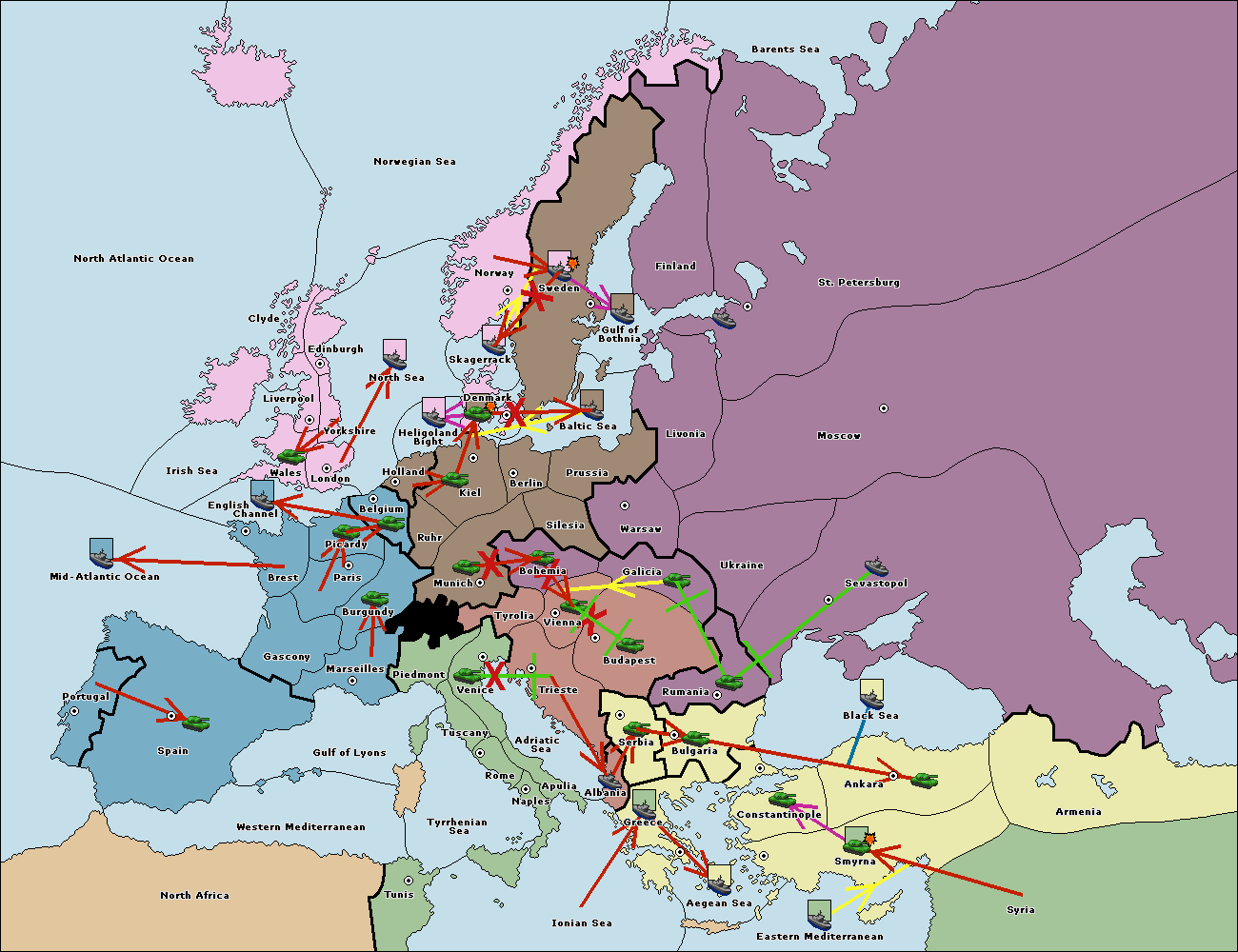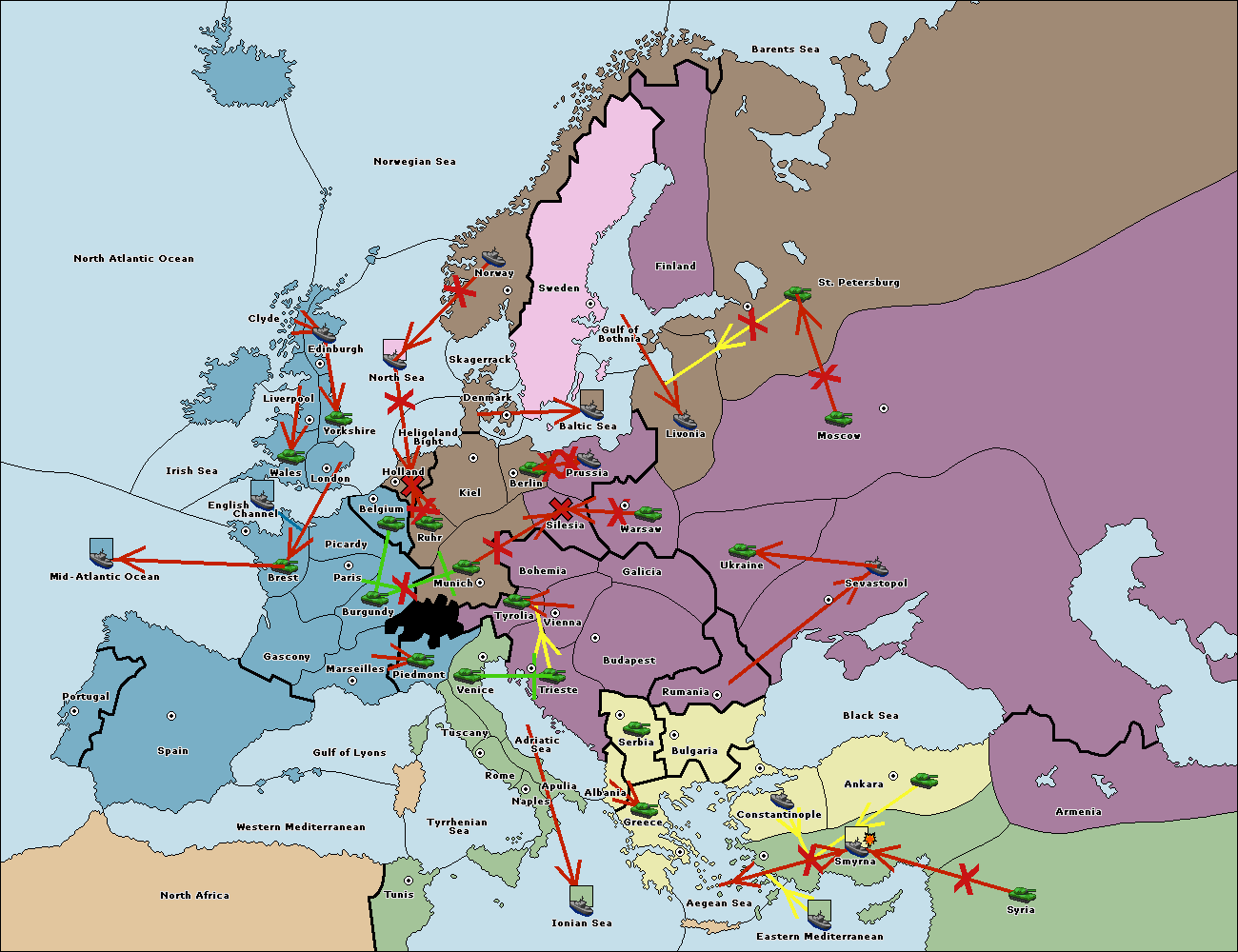 The fleet at Mid-Atlantic Ocean move to Western Mediterranean.