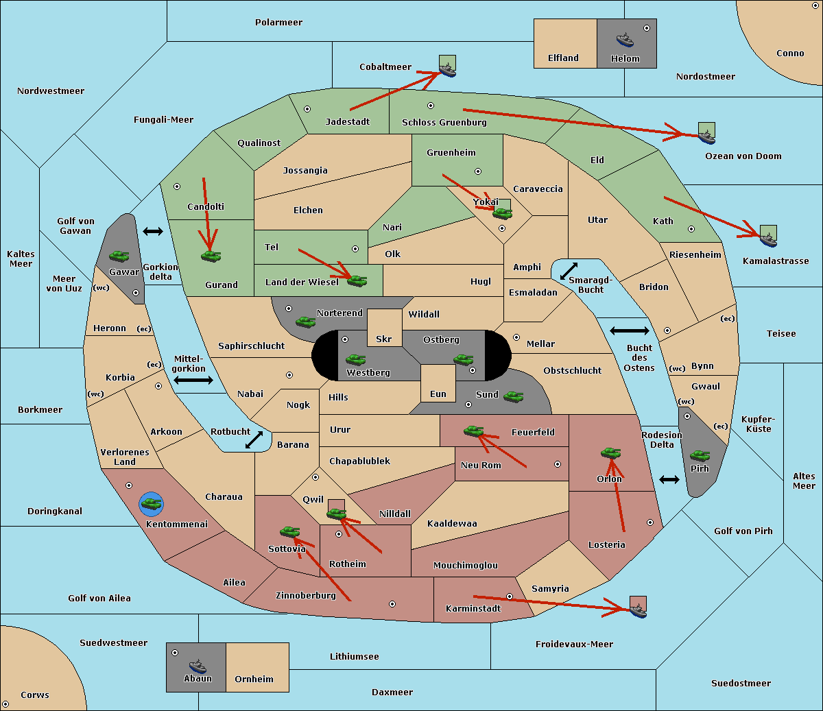 The fleet at Schloss Gruenburg move to Ozean von Doom.