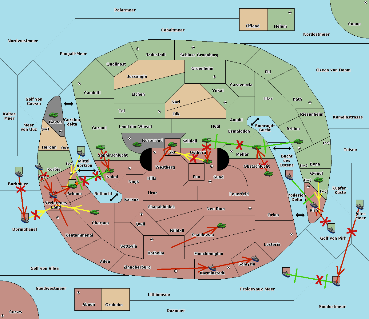 The fleet at Korbia (West Coast) move to Verlorenes Land.