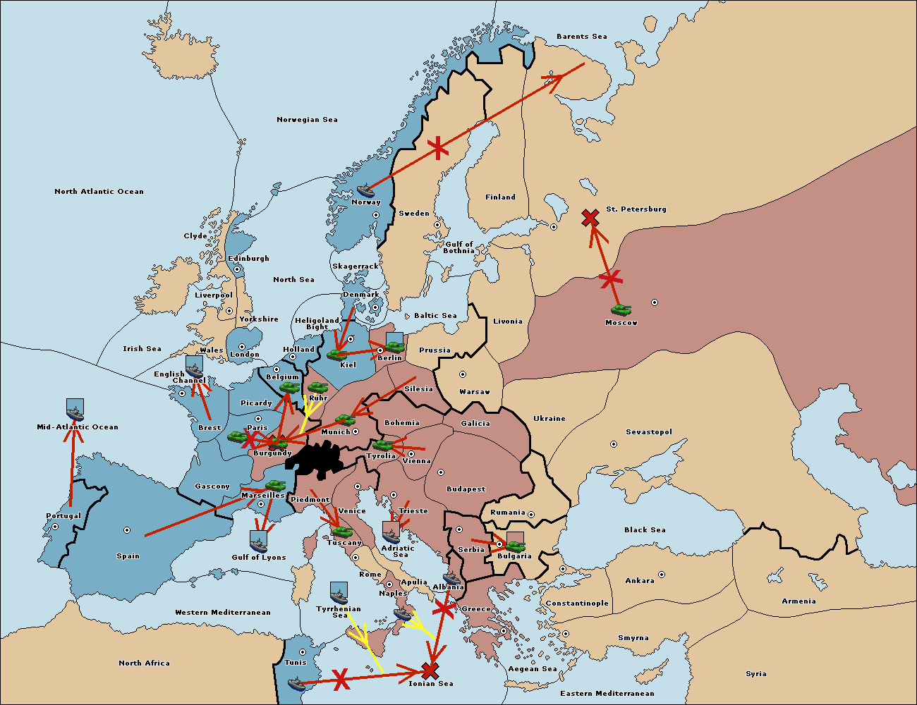 The fleet at Tyrrhenian Sea support move to Ionian Sea from Tunis.