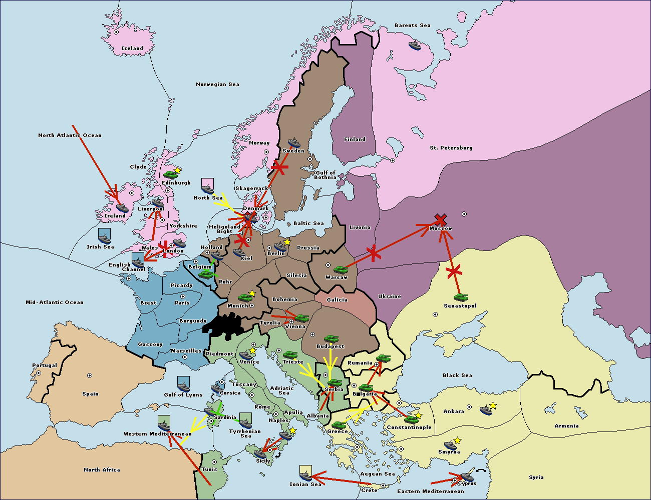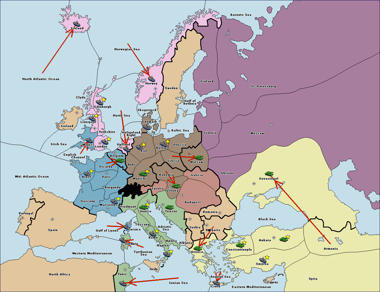 The fleet at Spain (South Coast) support hold to Western Mediterranean.