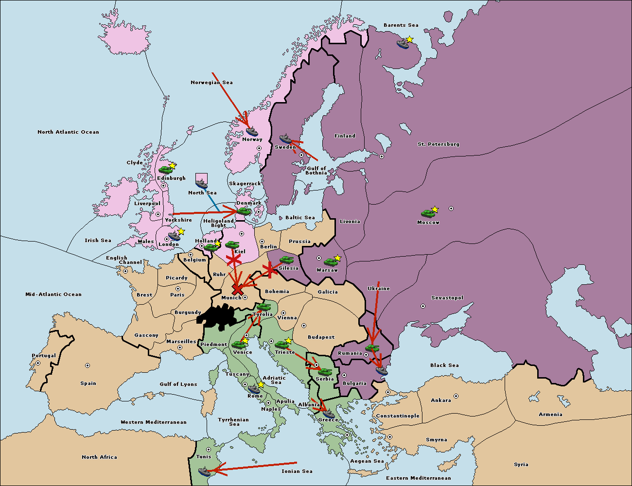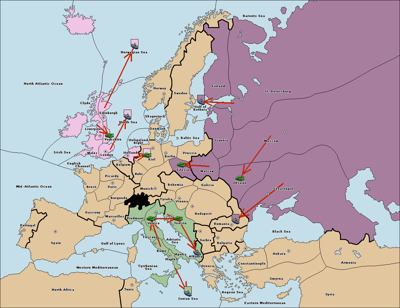 The fleet at Bulgaria (North Coast) move to Constantinople.