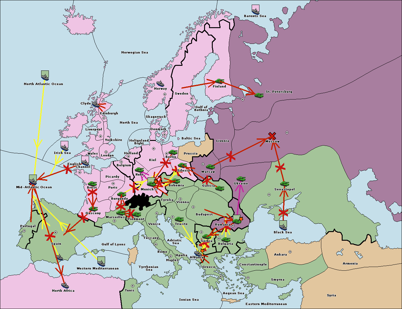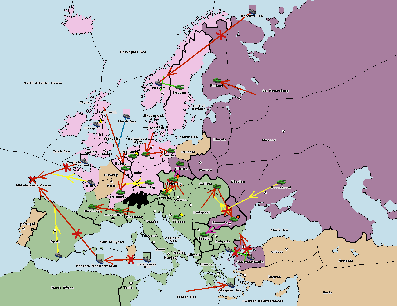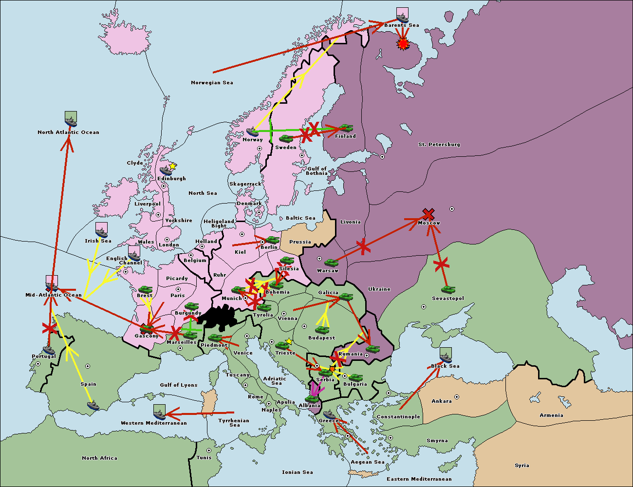 The fleet at Spain (South Coast) support move to Marseilles from Piedmont.