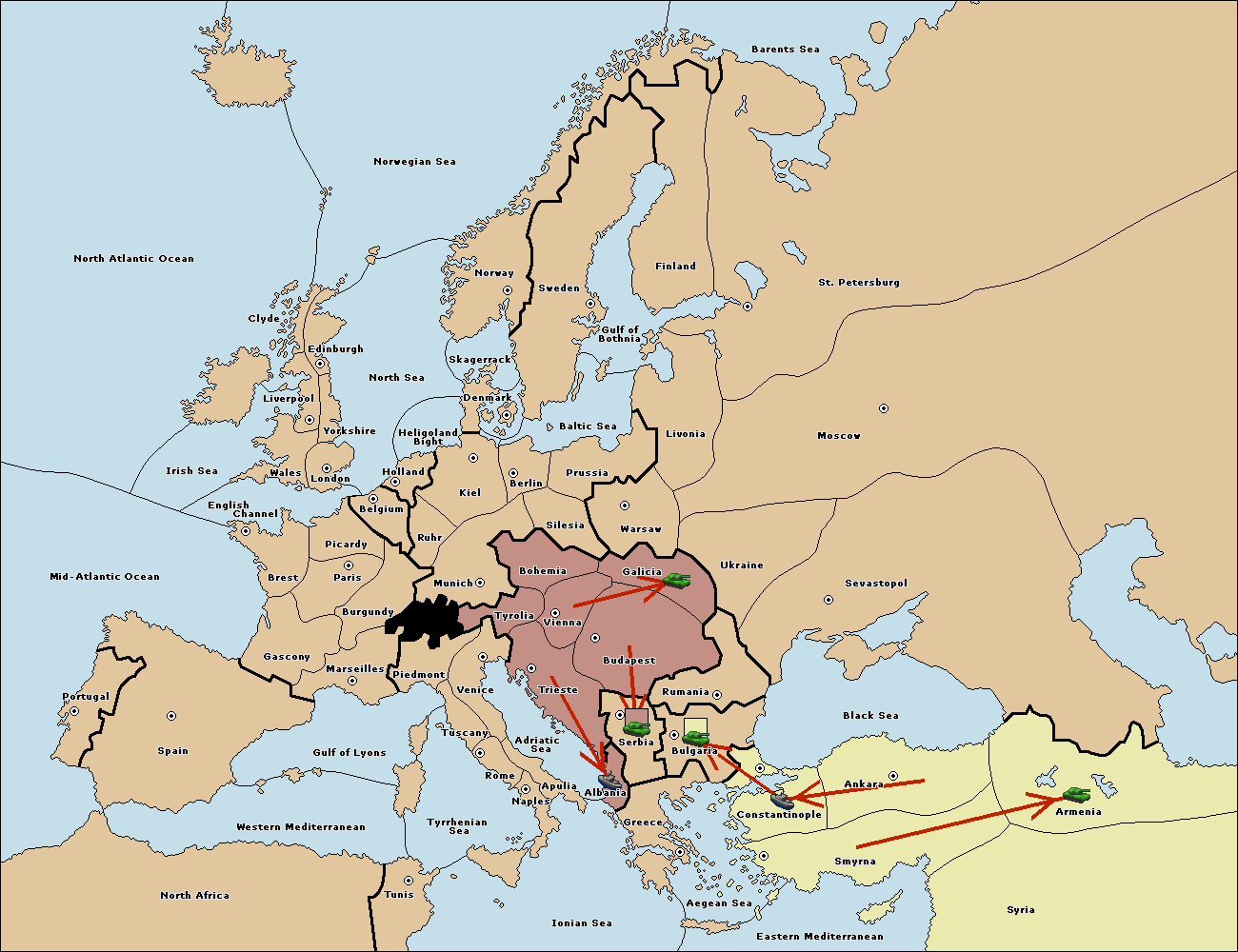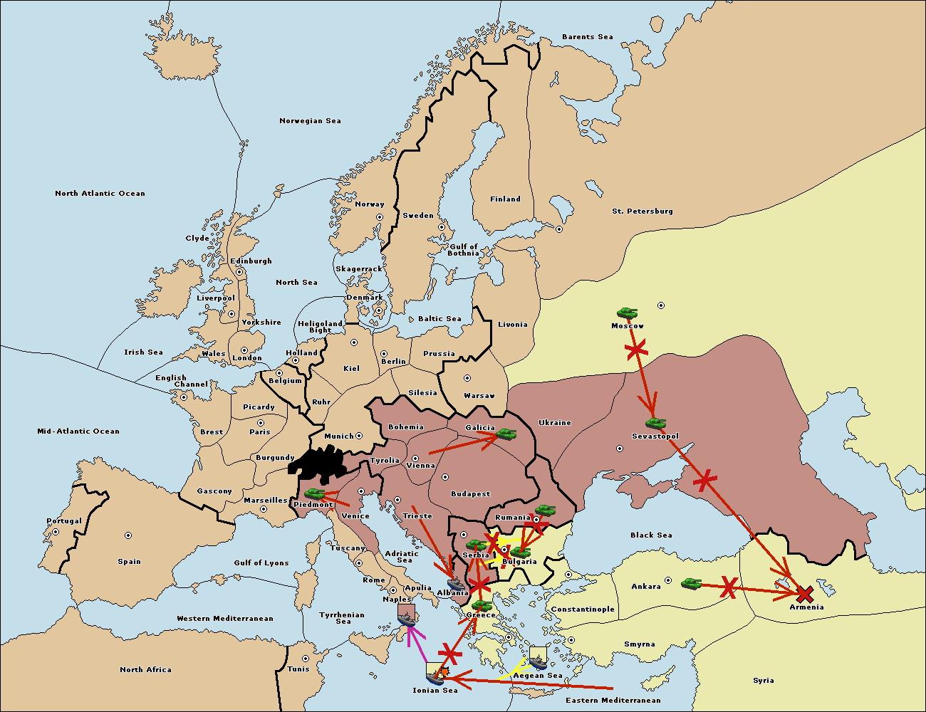 The army at Armenia move to Sevastopol.
