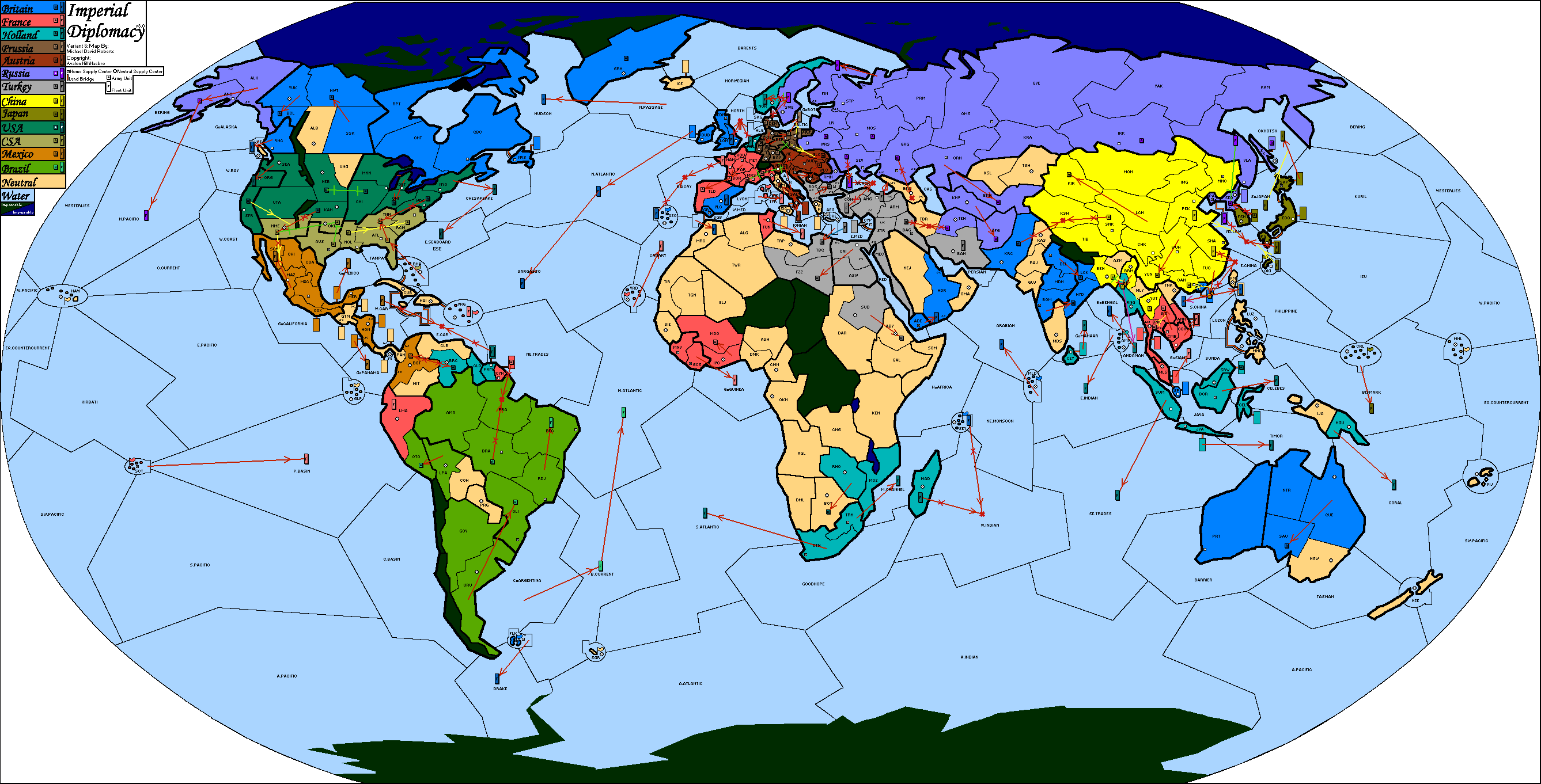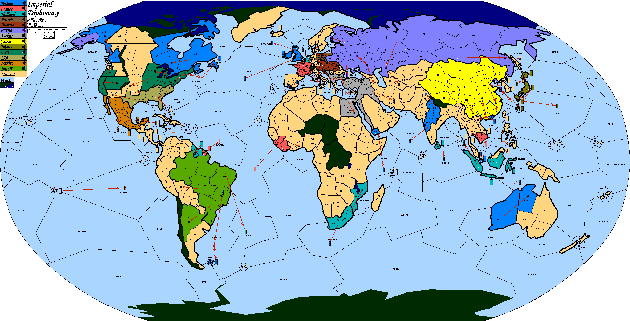 Imperial Diplomacy II, Очки за центры, Как в правилах, Анонимная, С выбором страны