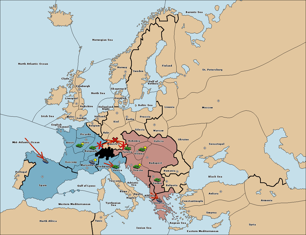 The army at Tyrolia move to Munich.