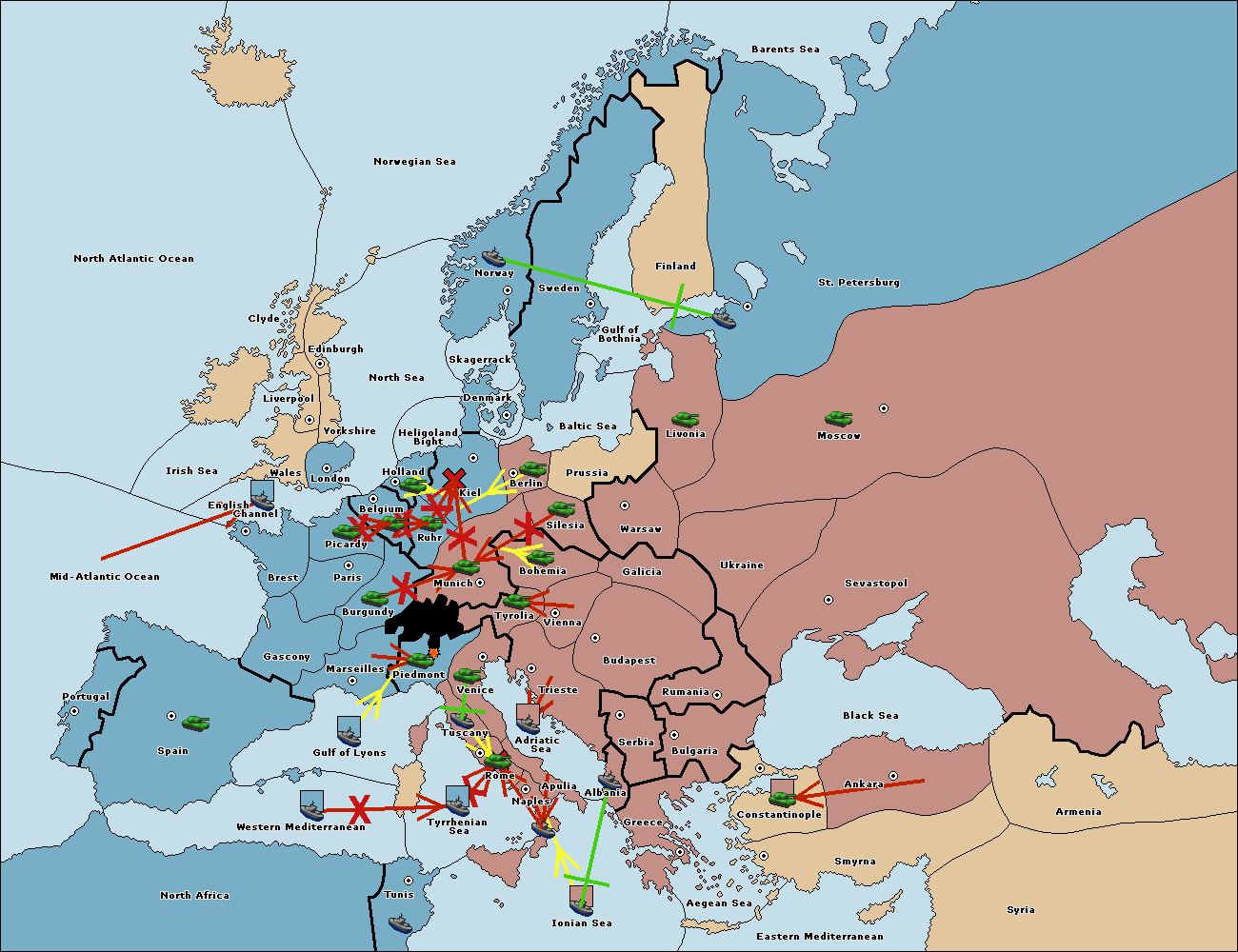 The fleet at Ionian Sea support move to Tunis from Tyrrhenian Sea.