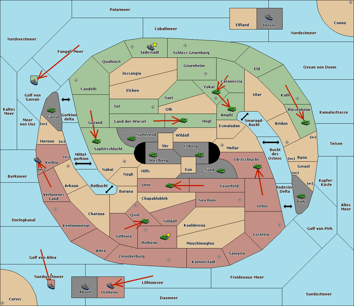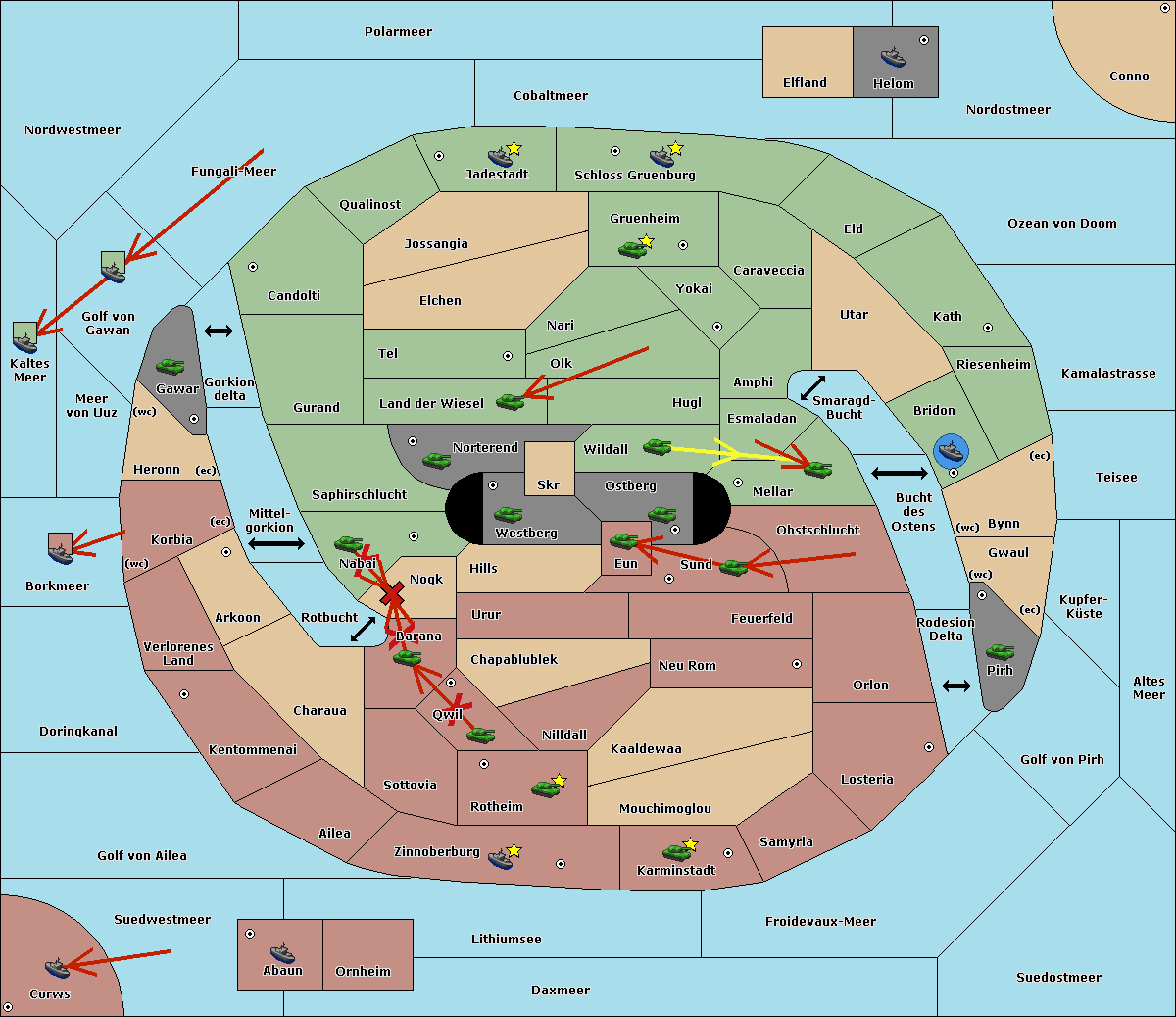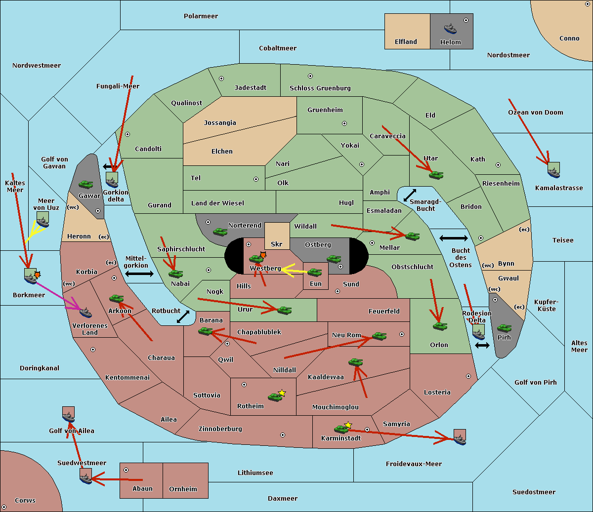 The fleet at Kaltes Meer support move to Meer von Uuz from Golf von Gawan.