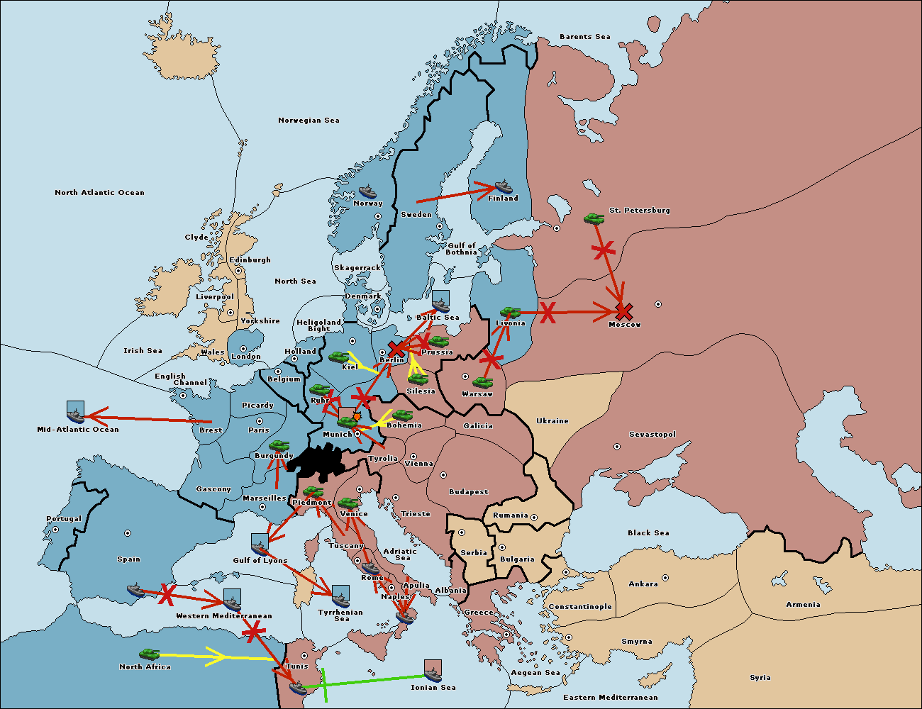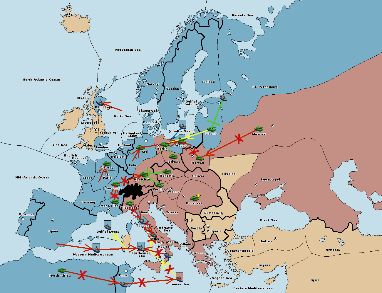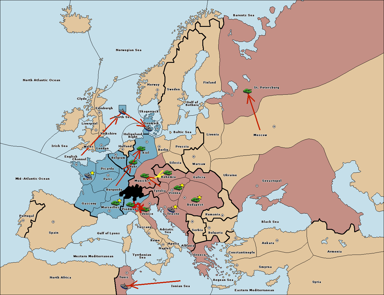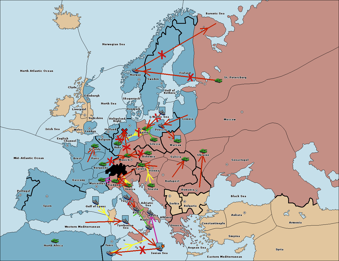 The fleet at Ionian Sea support move to Tunis from Tyrrhenian Sea.