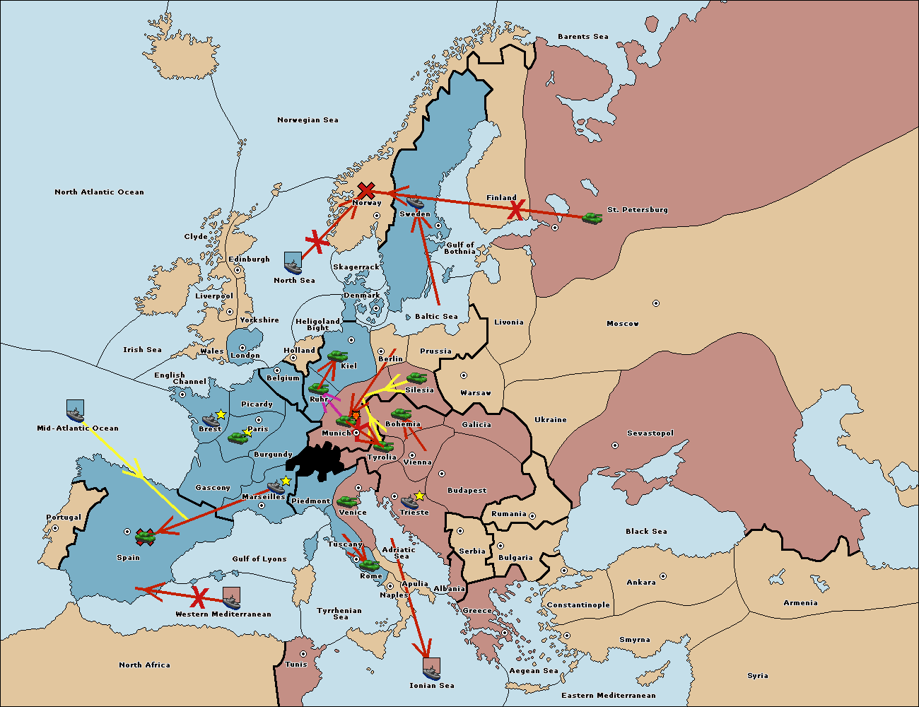 The fleet at Spain (South Coast) support move to Western Mediterranean from Mid-Atlantic Ocean.