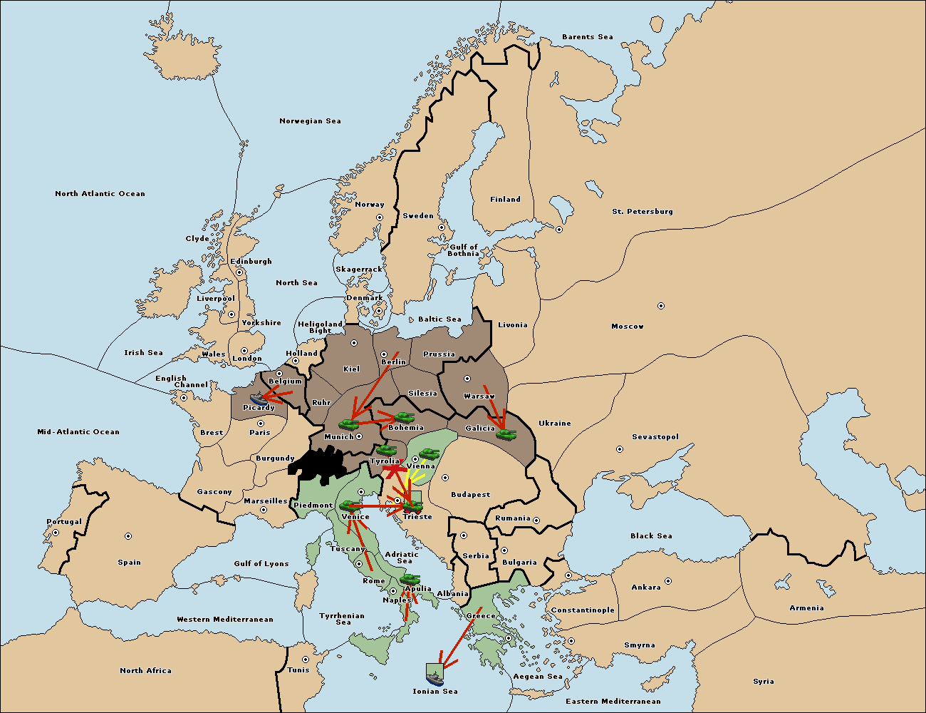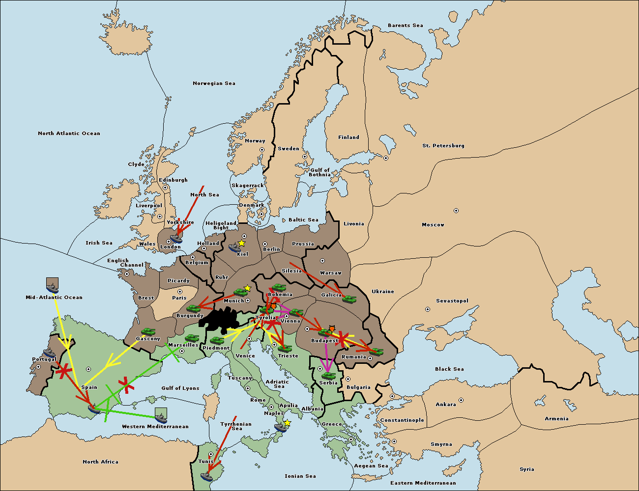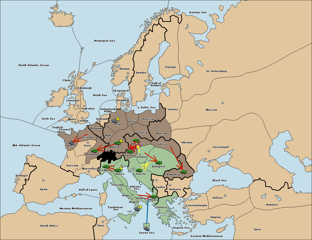 The fleet at Spain (South Coast) support move to Marseilles from Piedmont.