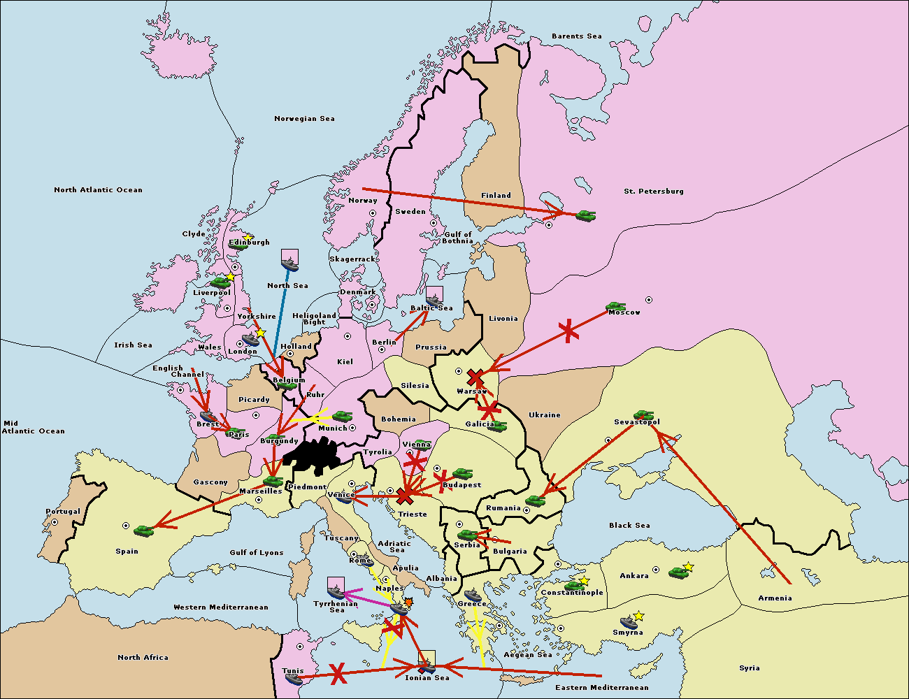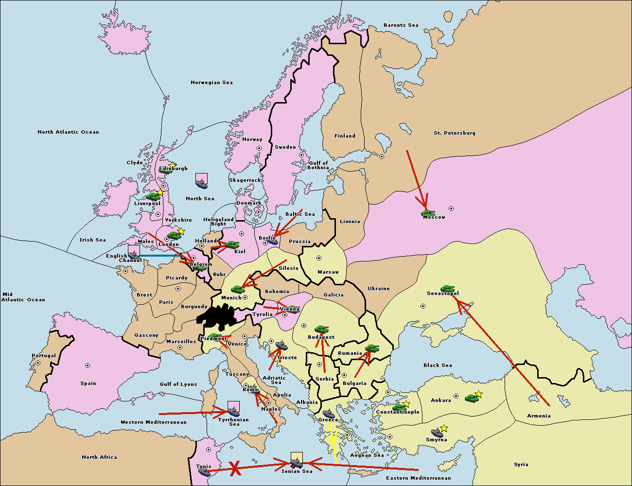 The fleet at Bulgaria (South Coast) move to Greece.