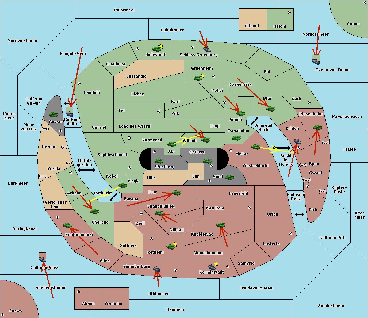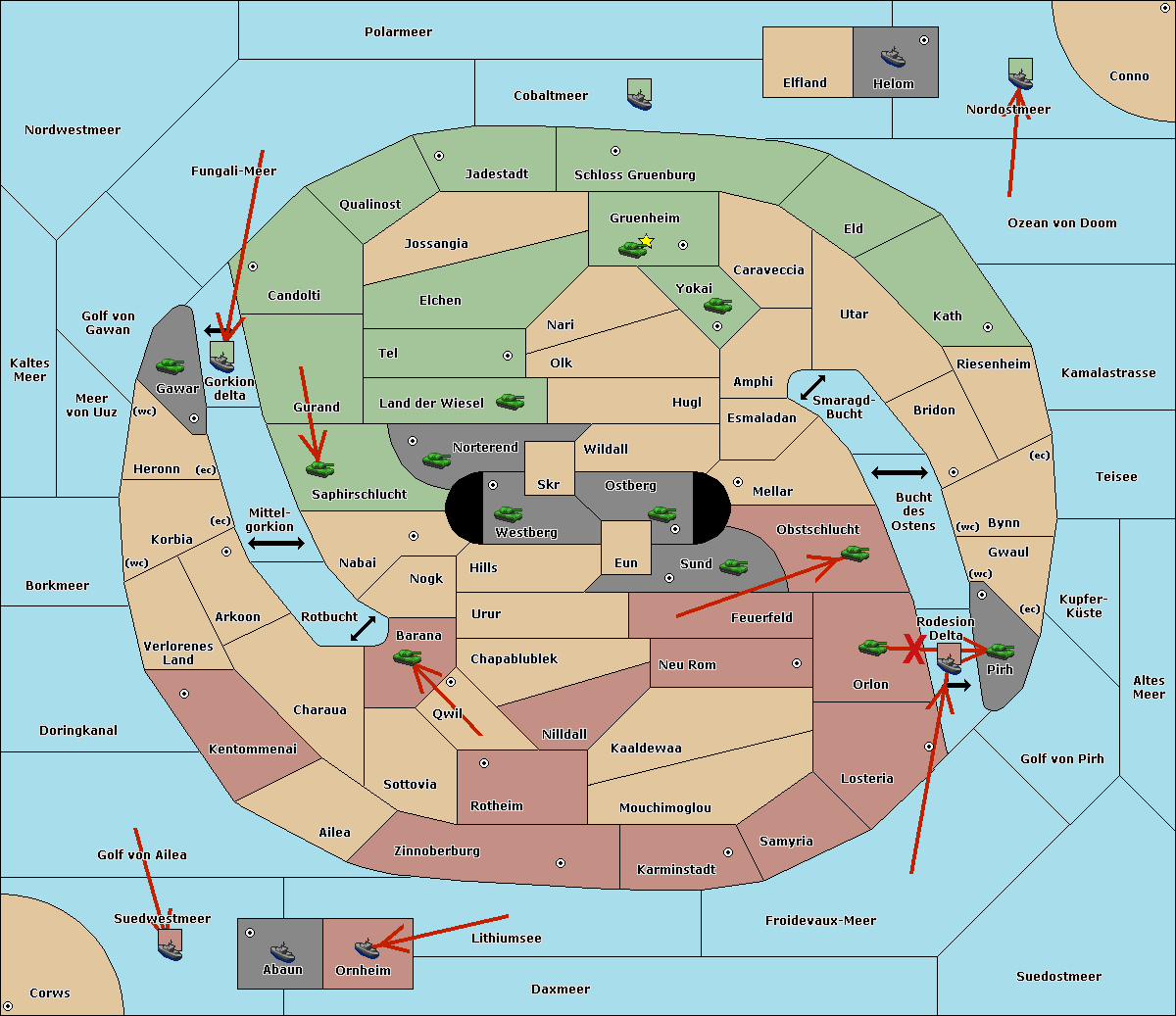 The fleet at Schloss Gruenburg move to Ozean von Doom.