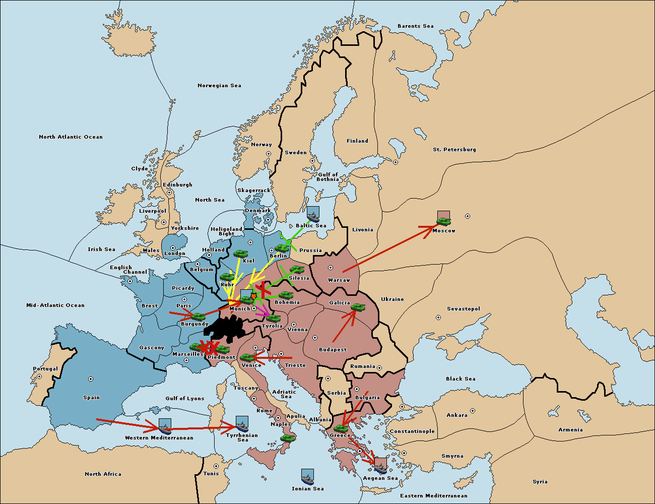 The fleet at Tyrrhenian Sea support move to Naples from Ionian Sea.
