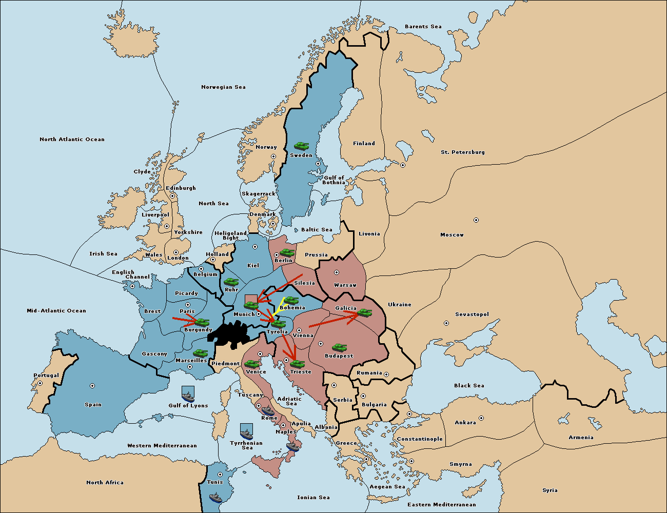 The army at Tyrolia move to Trieste.