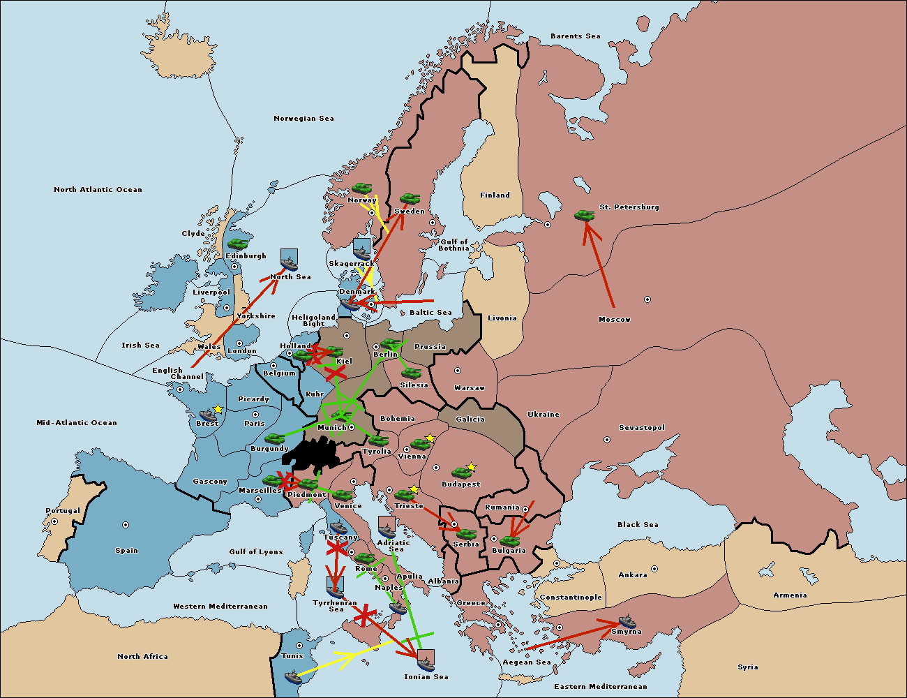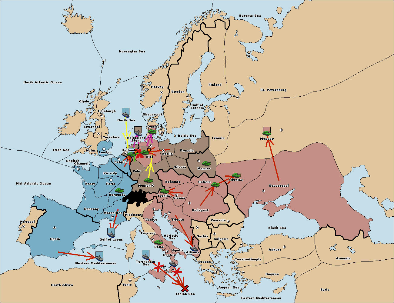 The fleet at Ionian Sea support move to Tyrrhenian Sea from Naples.