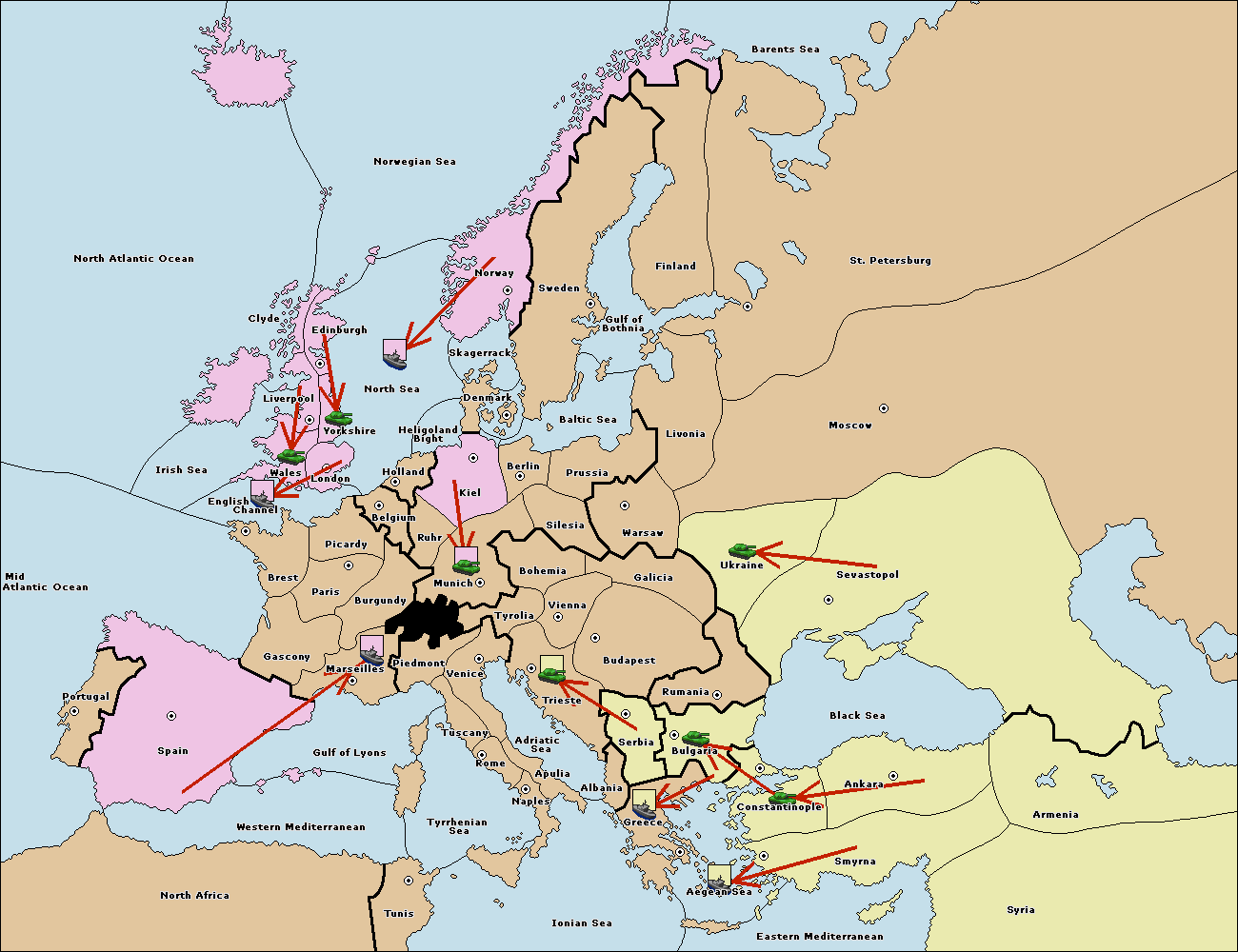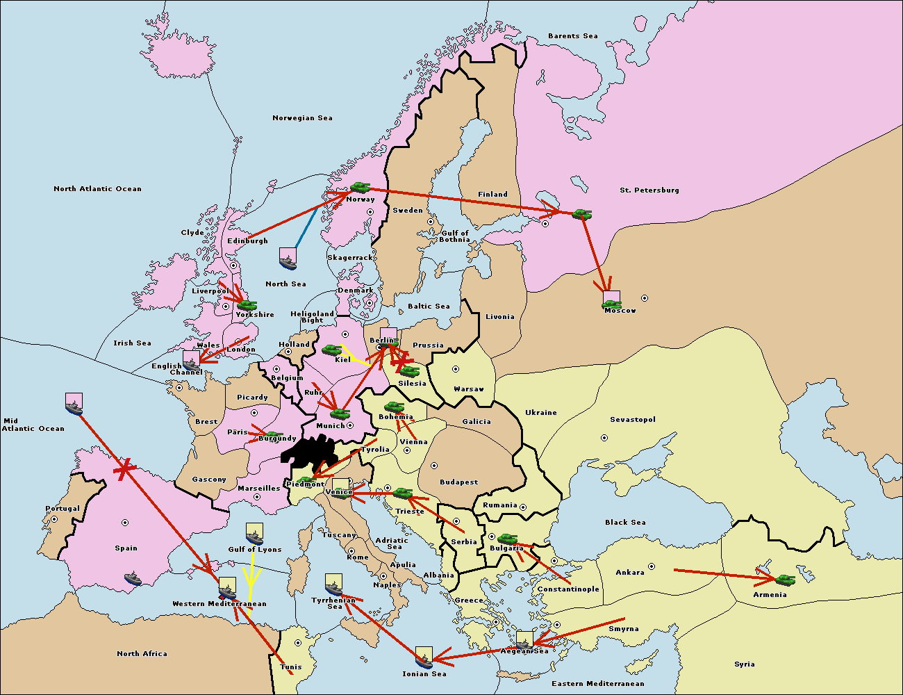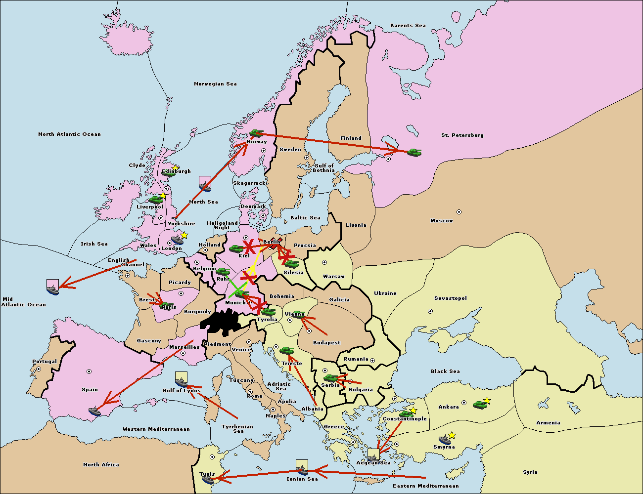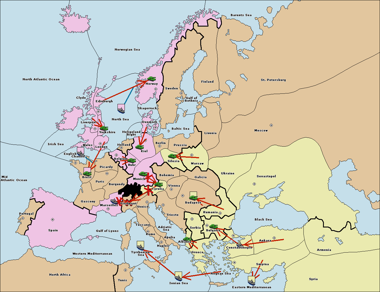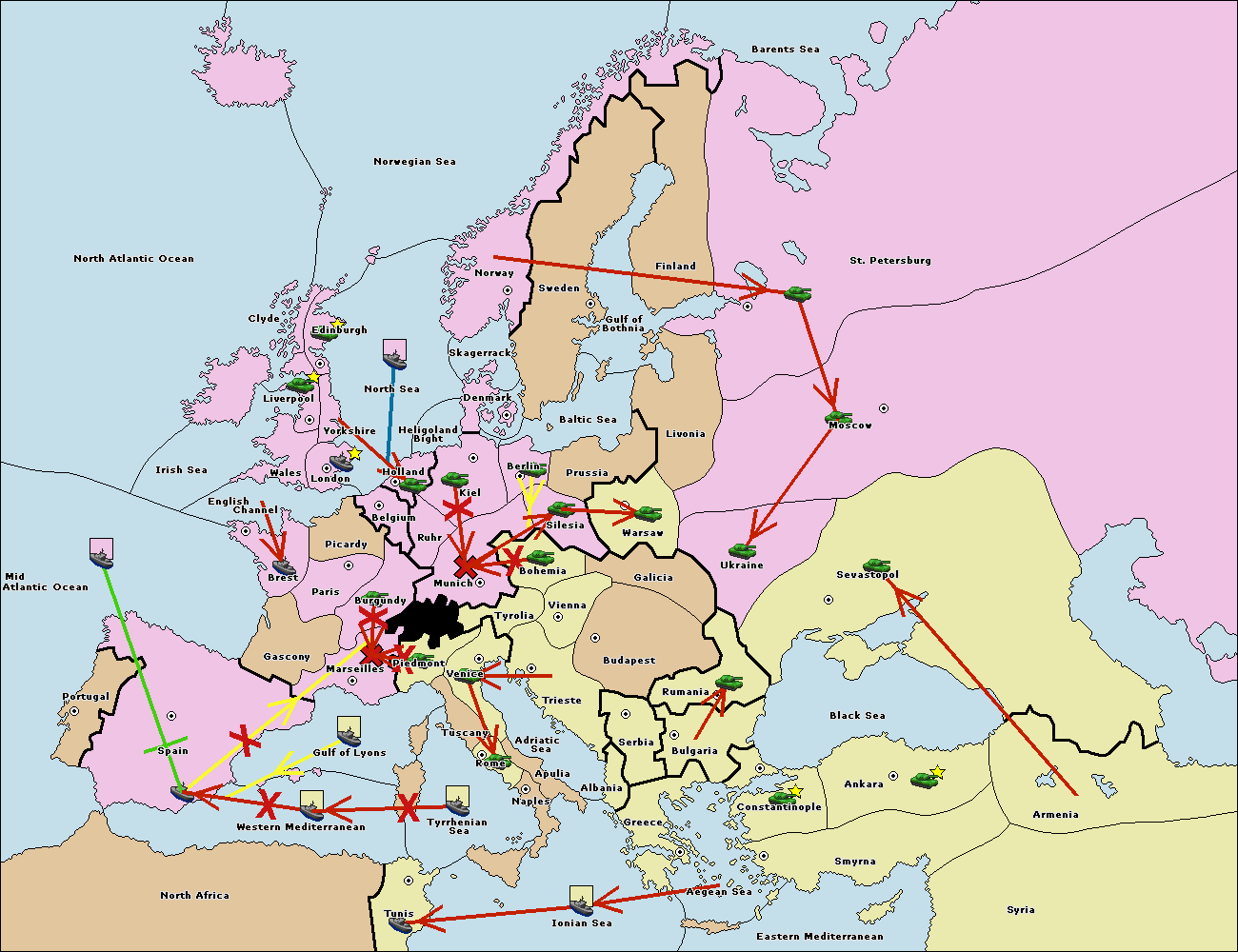 The fleet at Spain (South Coast) support move to Marseilles from Burgundy.
