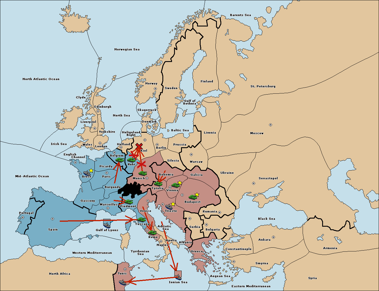 The fleet at Spain (South Coast) support hold to Marseilles.