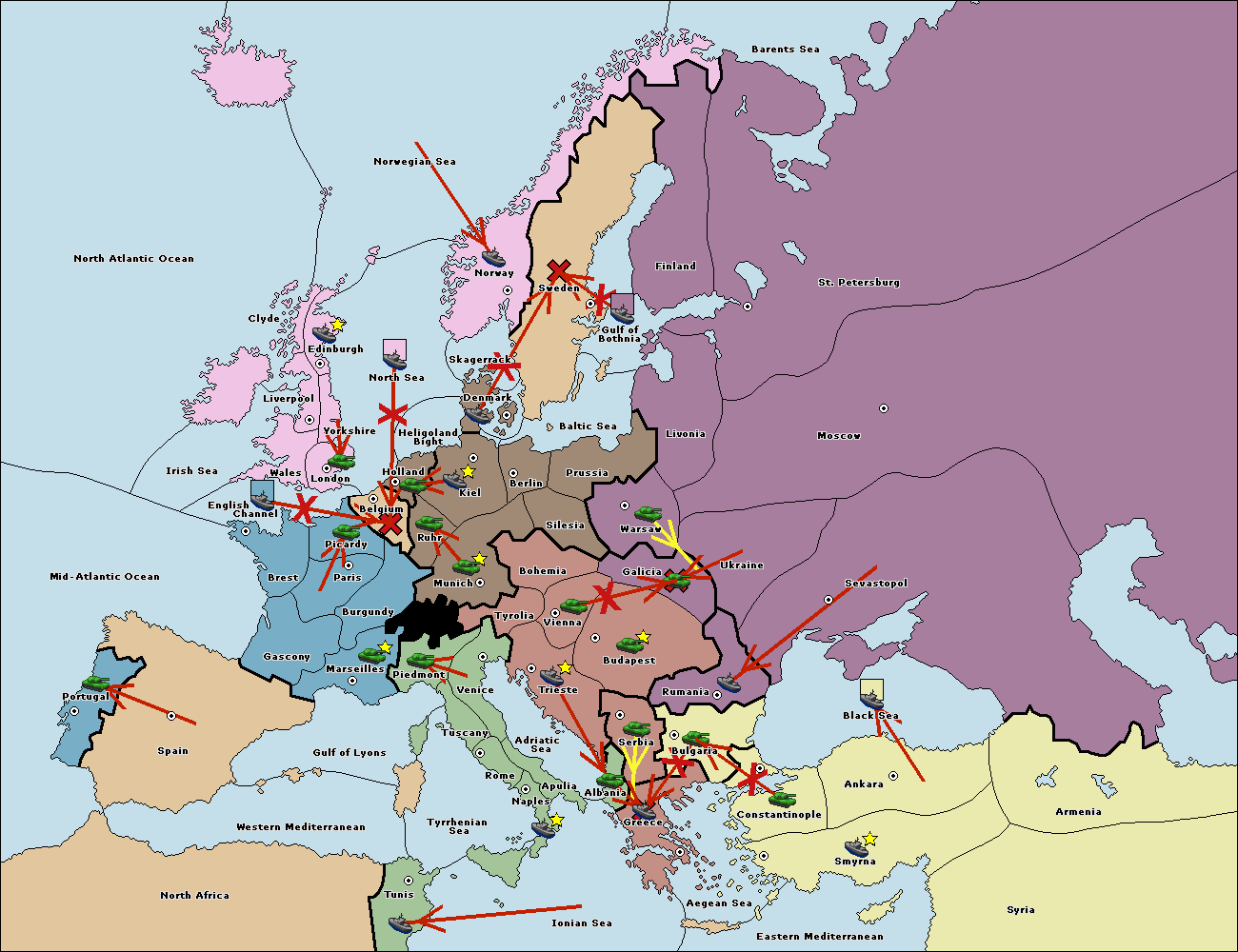 The fleet at Aegean Sea move to Bulgaria (South Coast).