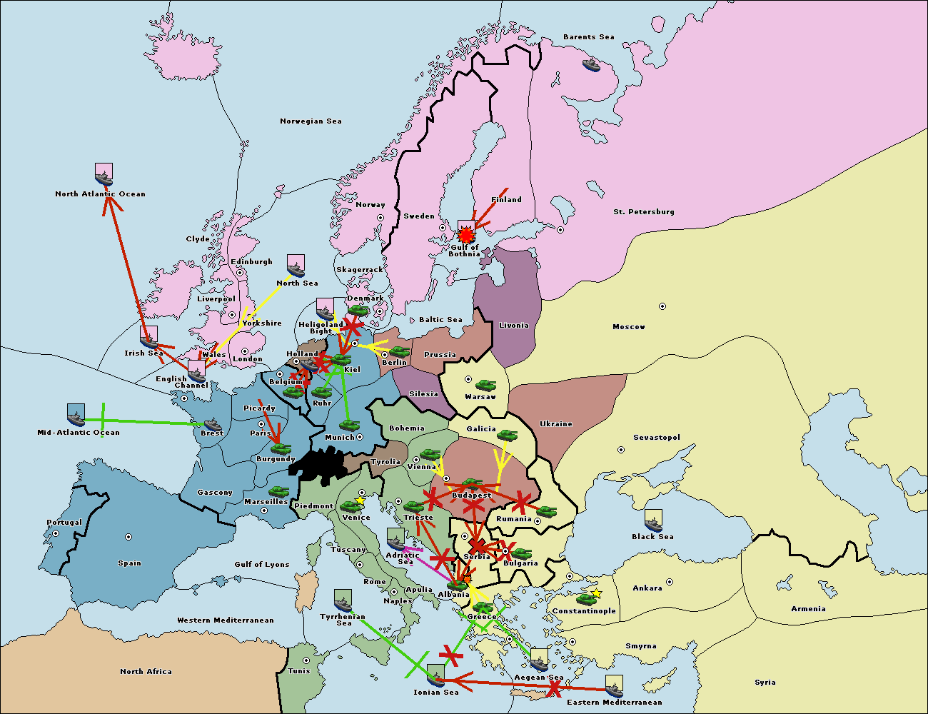 The fleet at Aegean Sea support move to Greece from Bulgaria.