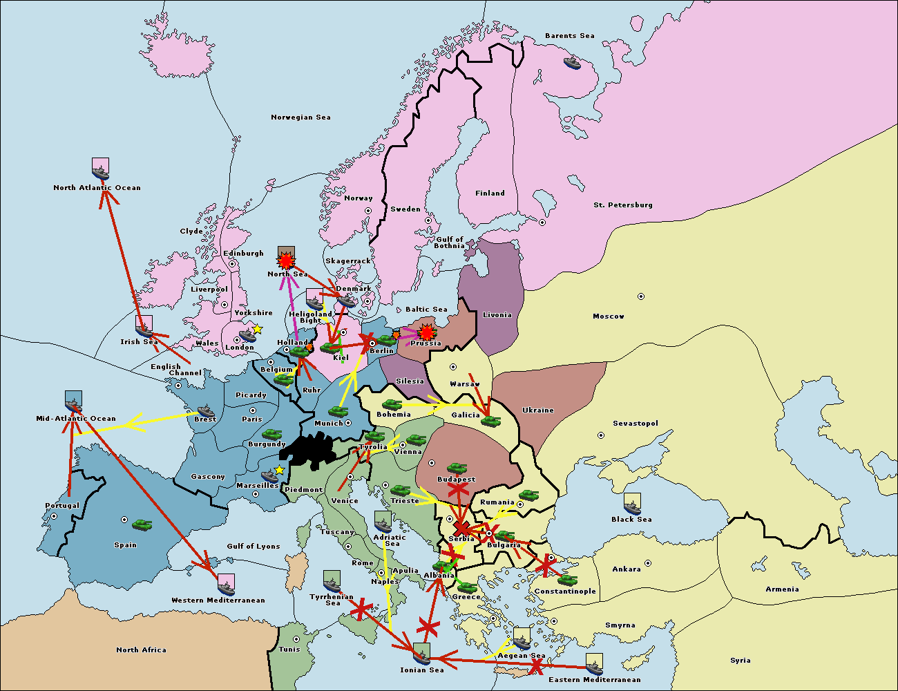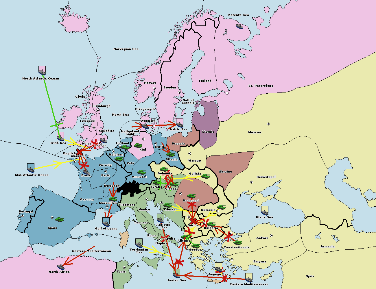 The fleet at Mid-Atlantic Ocean support move to English Channel from Brest.