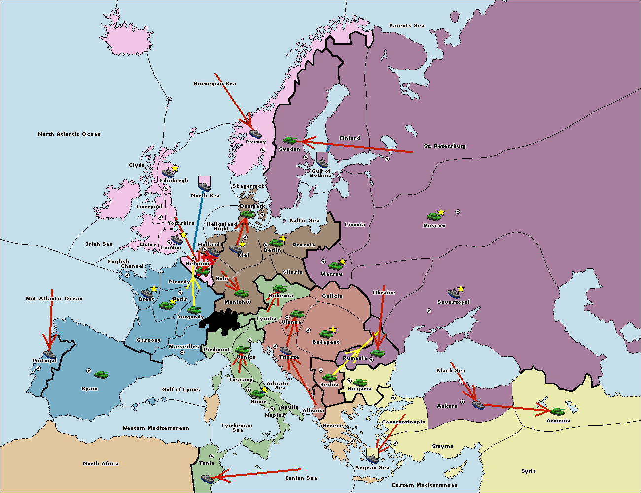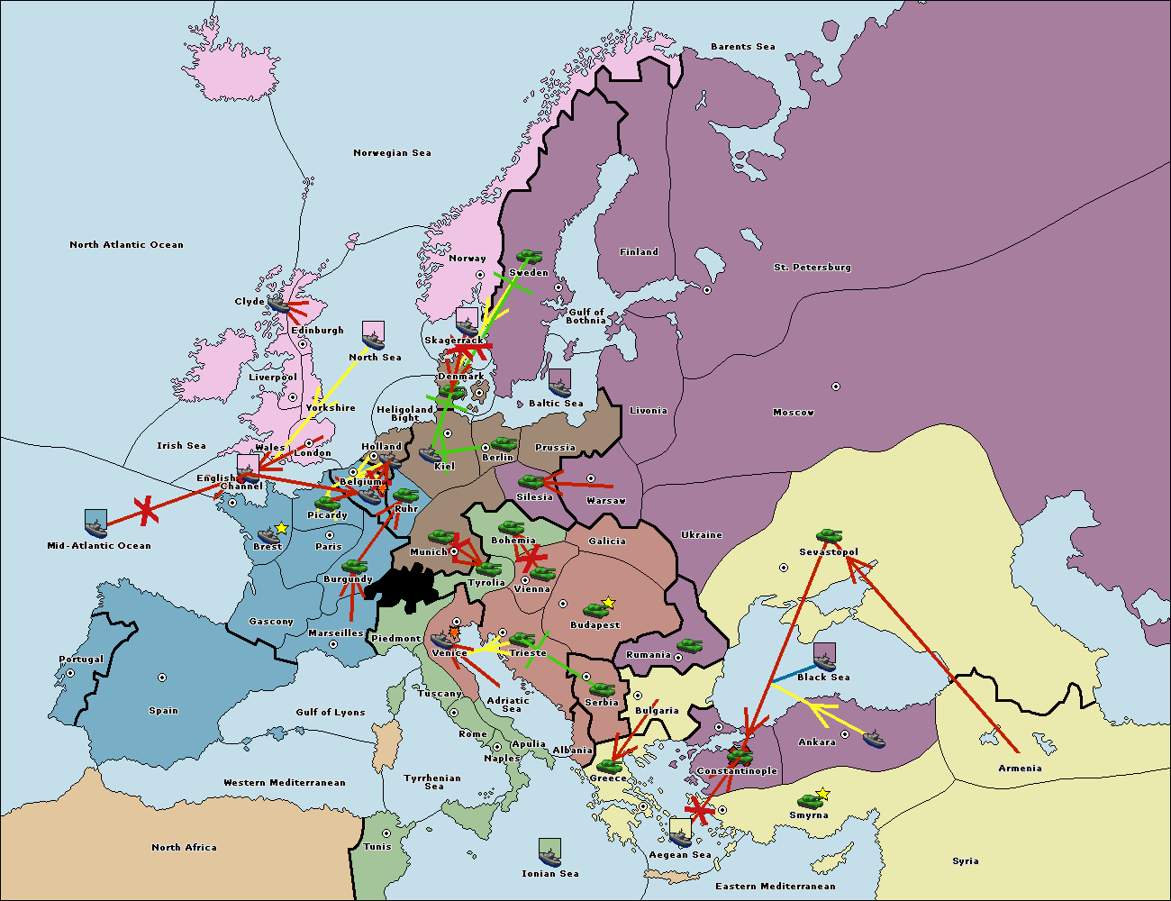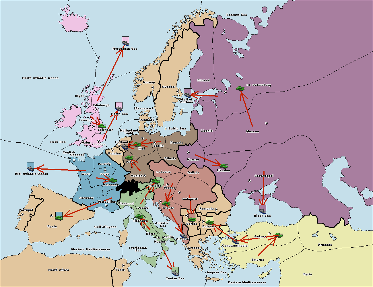 The fleet at Ankara support move to Constantinople from Sevastopol.