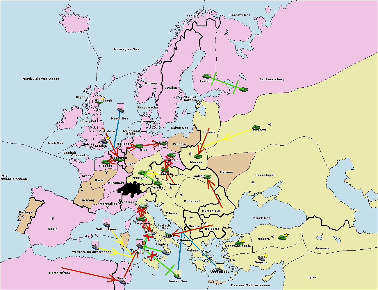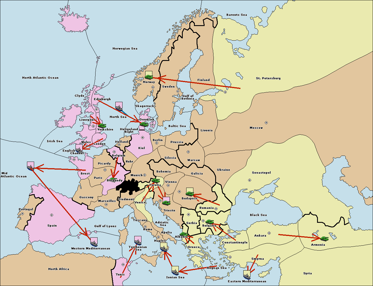 The fleet at Mid-Atlantic Ocean move to Western Mediterranean.