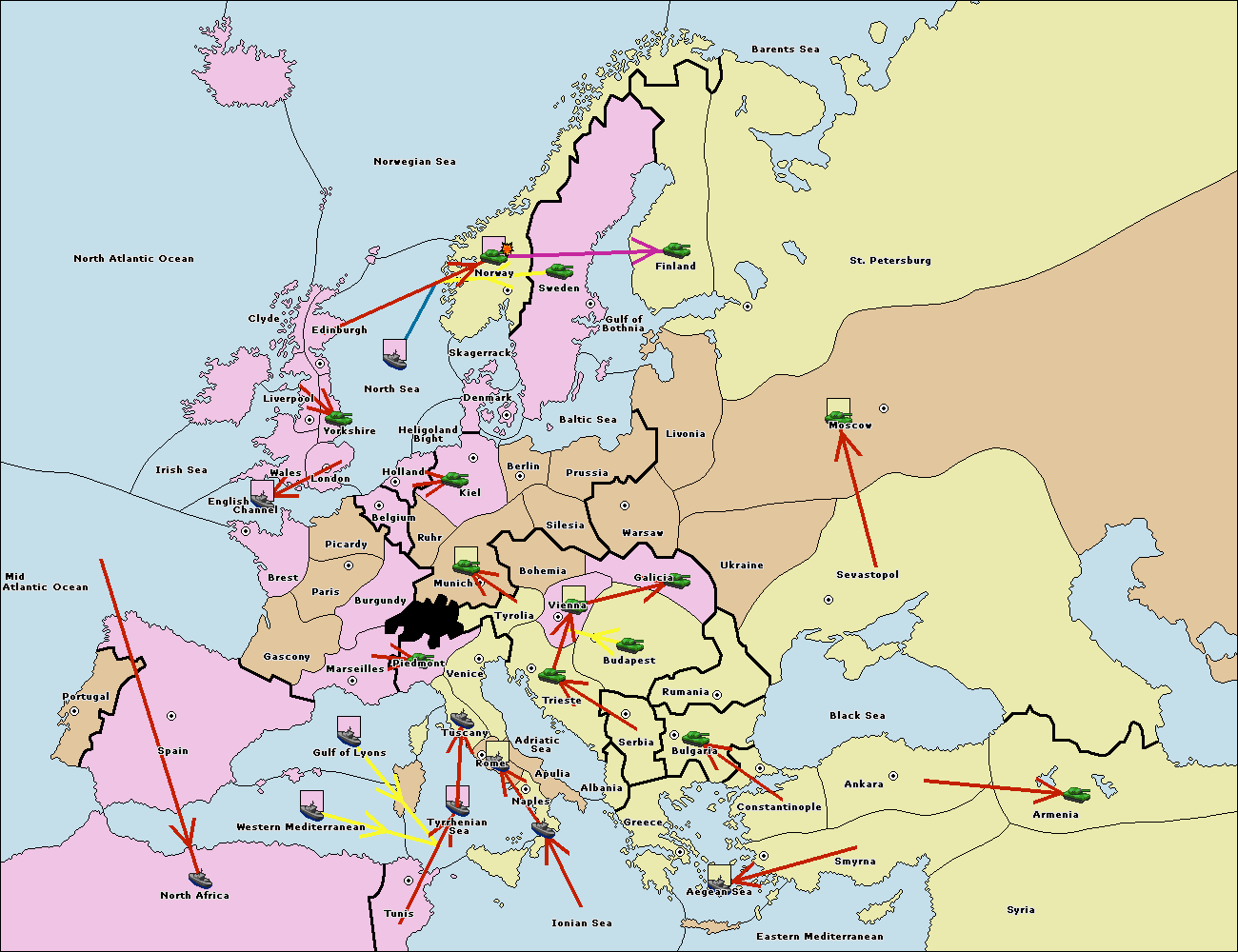 The fleet at Ionian Sea support move to Tyrrhenian Sea from Tuscany.