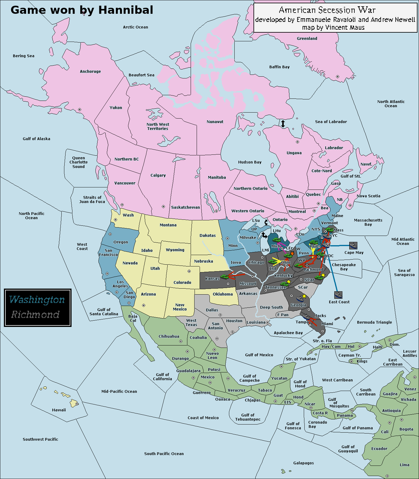 Fall of the American Empire: Civil War!, Банк победителю, Только общие сообщения, С выбором страны
