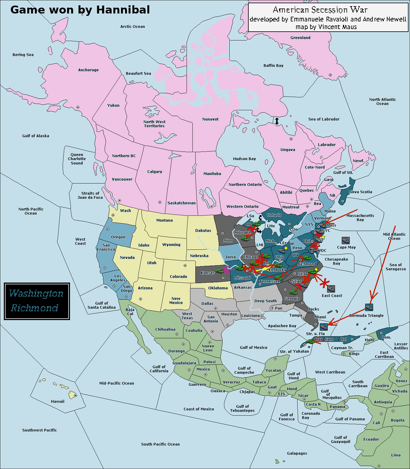 Fall of the American Empire: Civil War!, Банк победителю, Только общие сообщения, С выбором страны