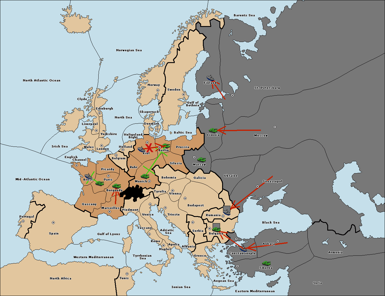 The fleet at St. Petersburg (South Coast) move to Finland.