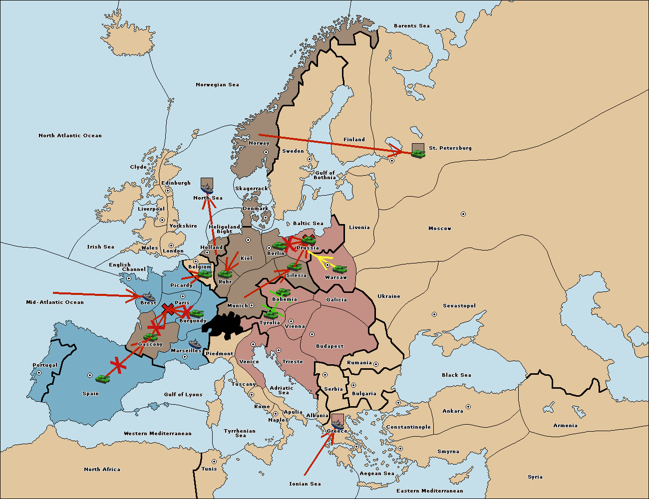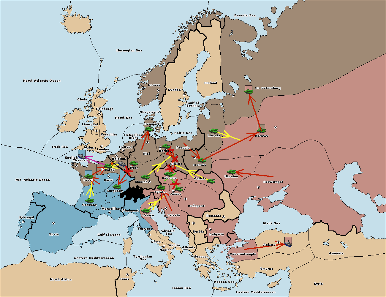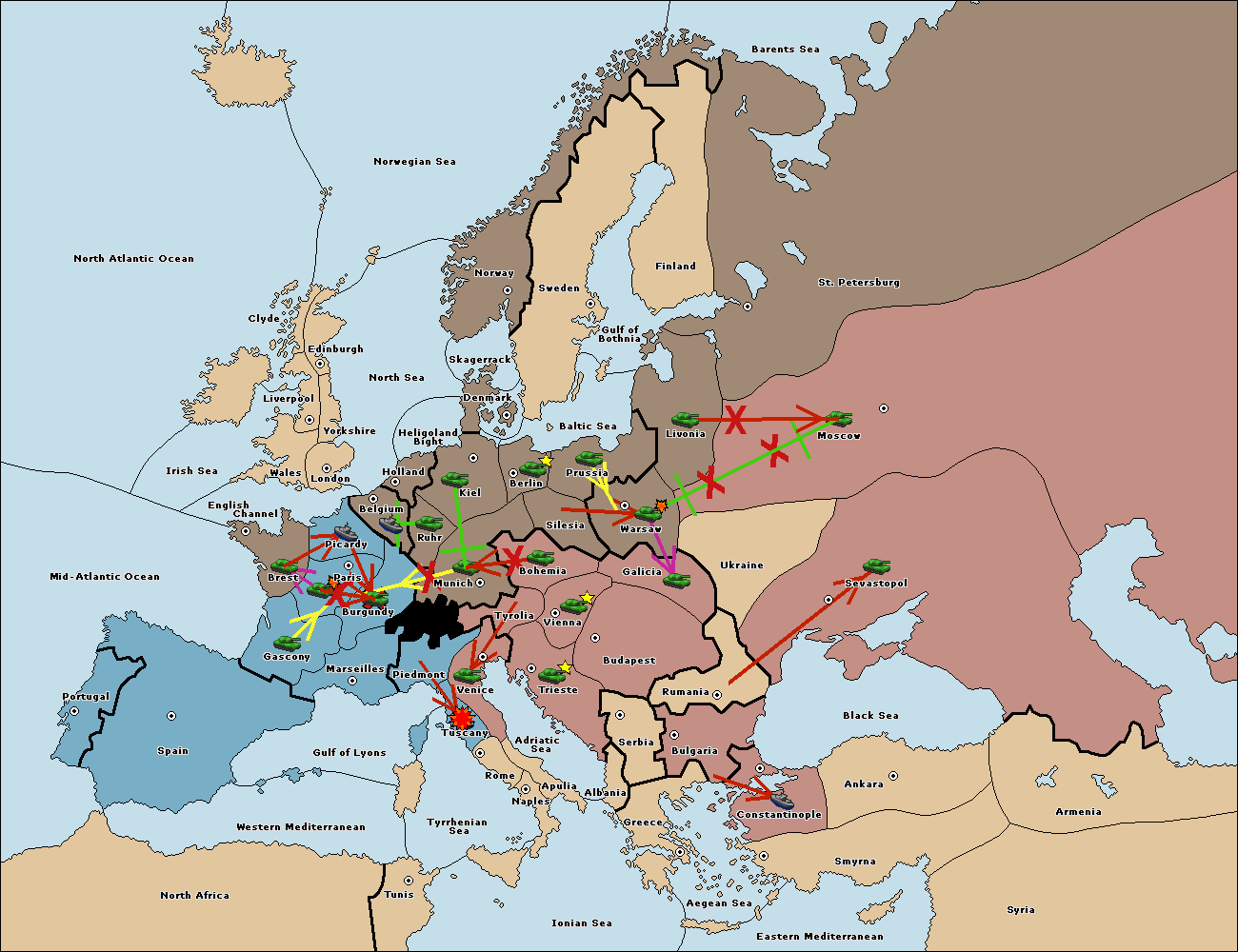 The fleet at Bulgaria (South Coast) move to Constantinople.