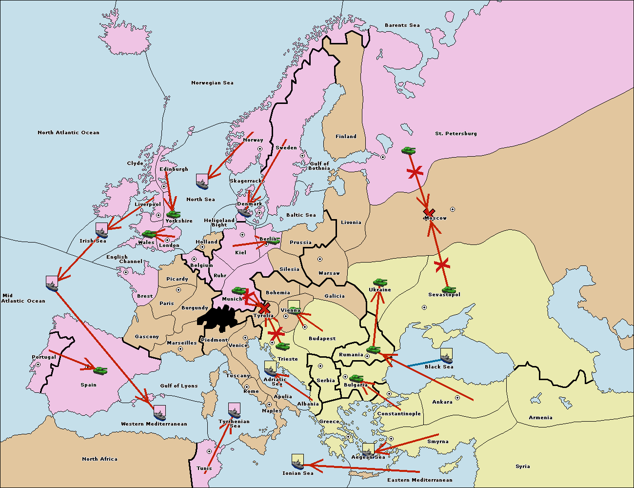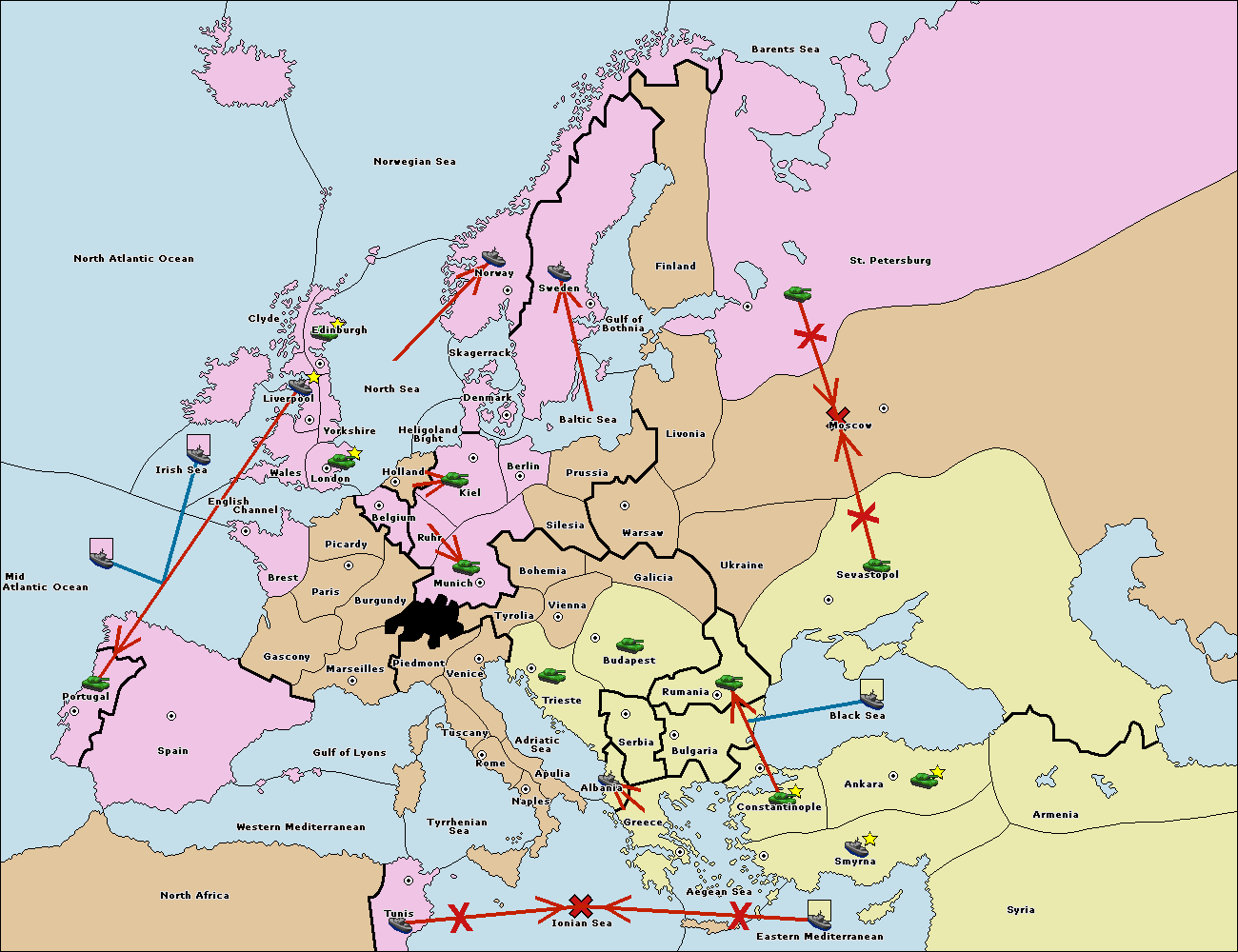 The fleet at Mid-Atlantic Ocean move to Western Mediterranean.