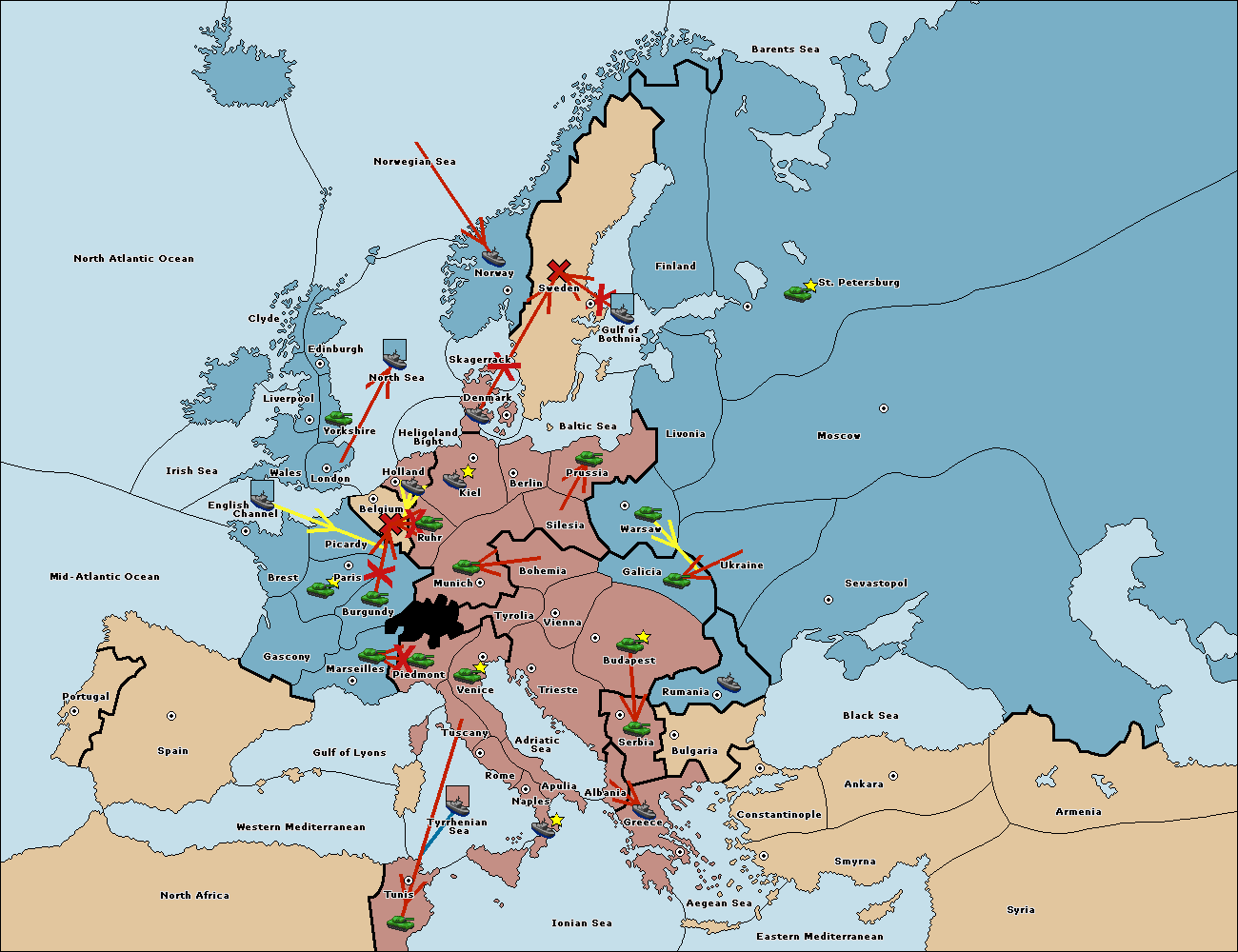 The fleet at St. Petersburg (South Coast) move to Gulf of Bothnia.