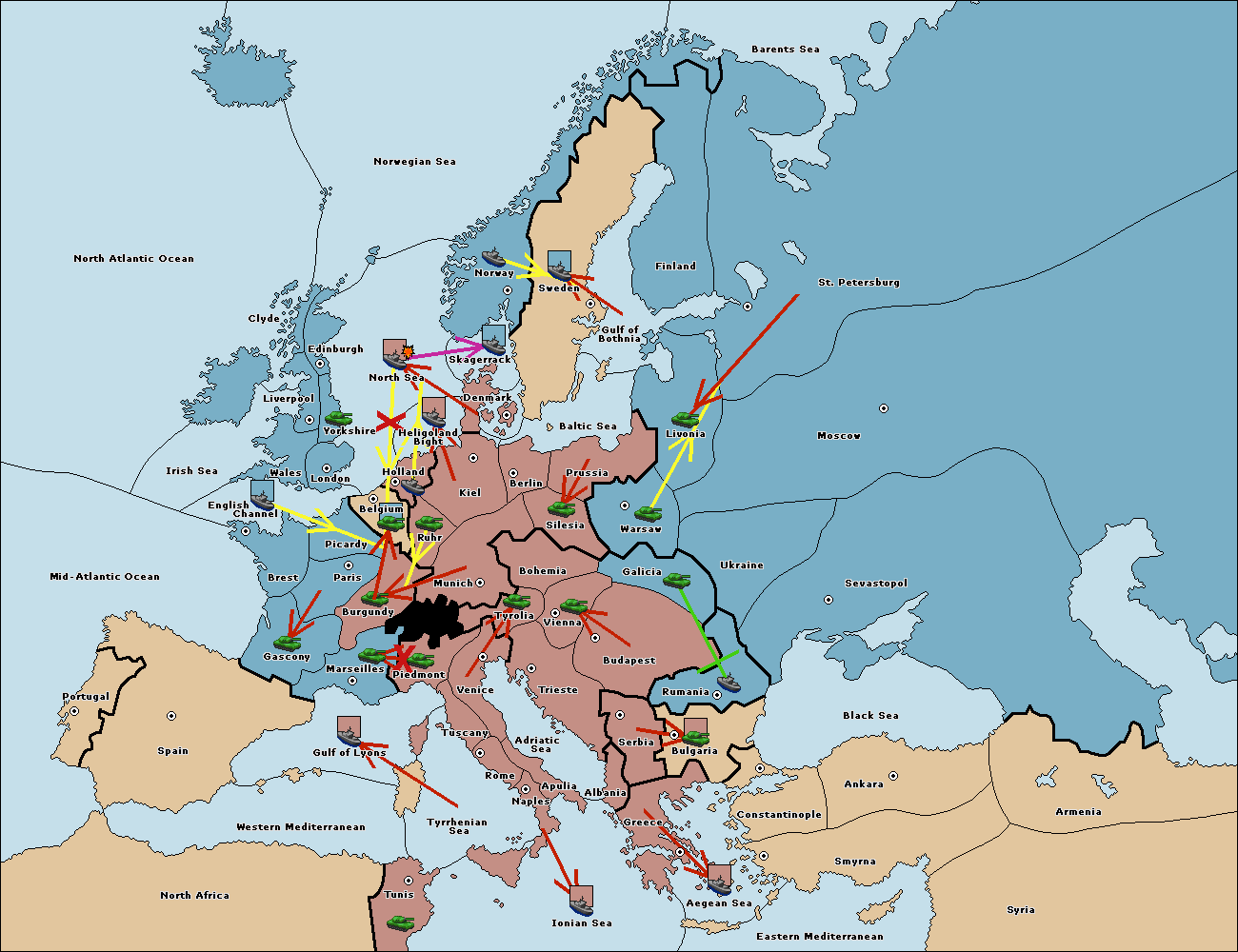 The fleet at Gulf of Lyons support move to Marseilles from Burgundy.