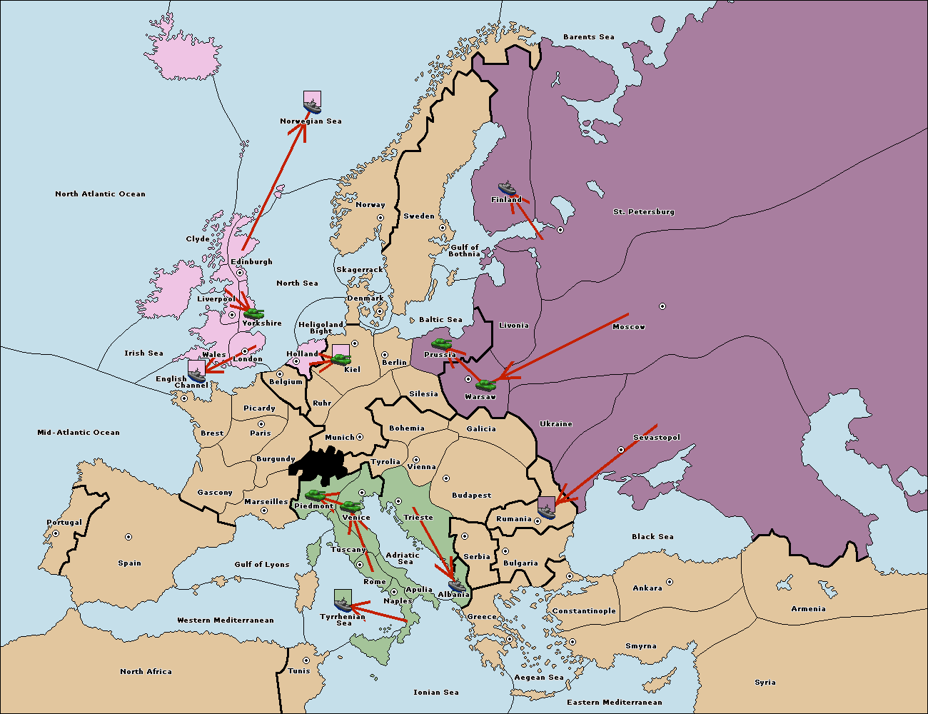 The fleet at Bulgaria (North Coast) move to Black Sea.