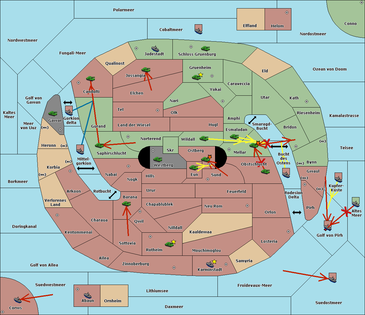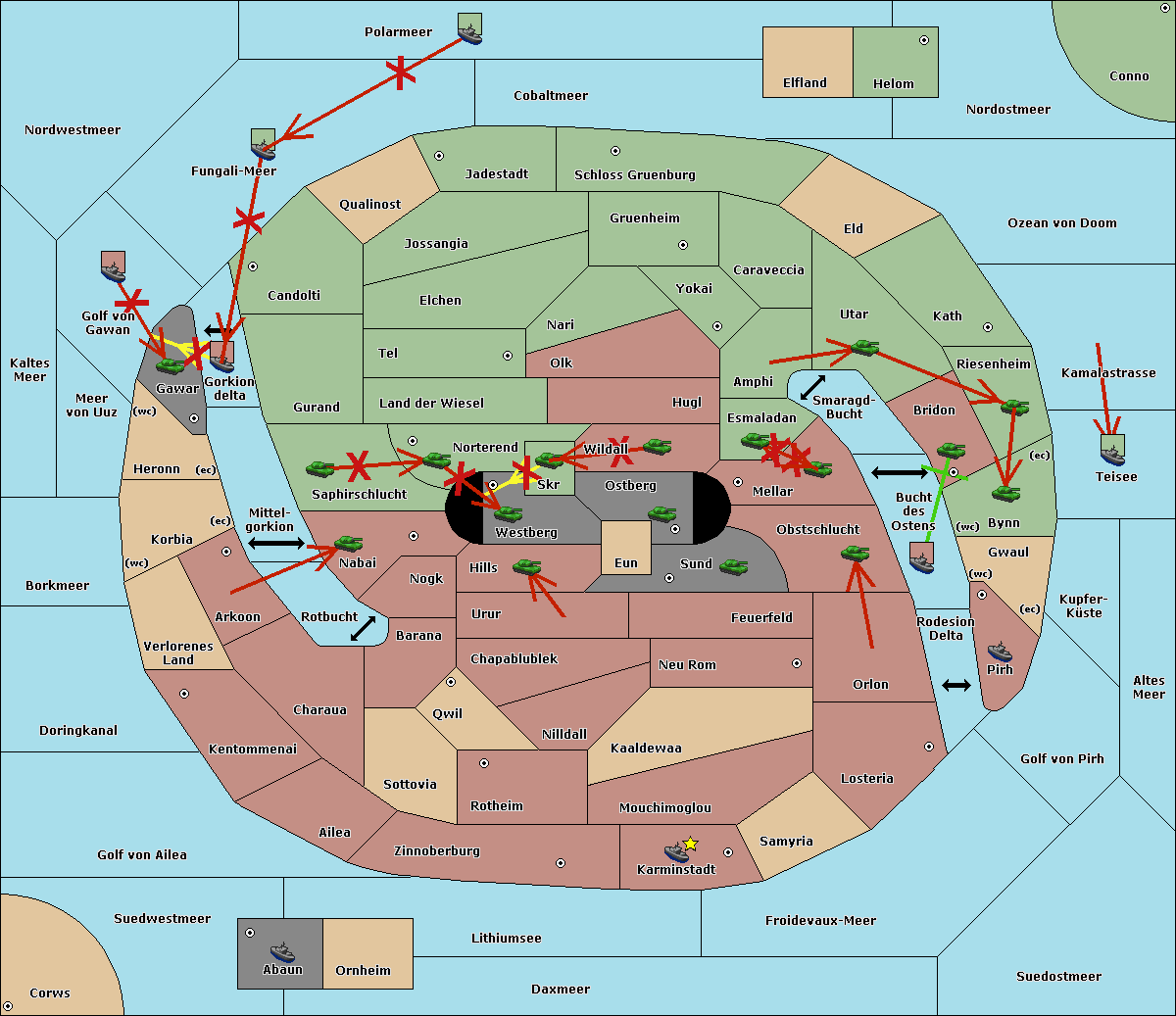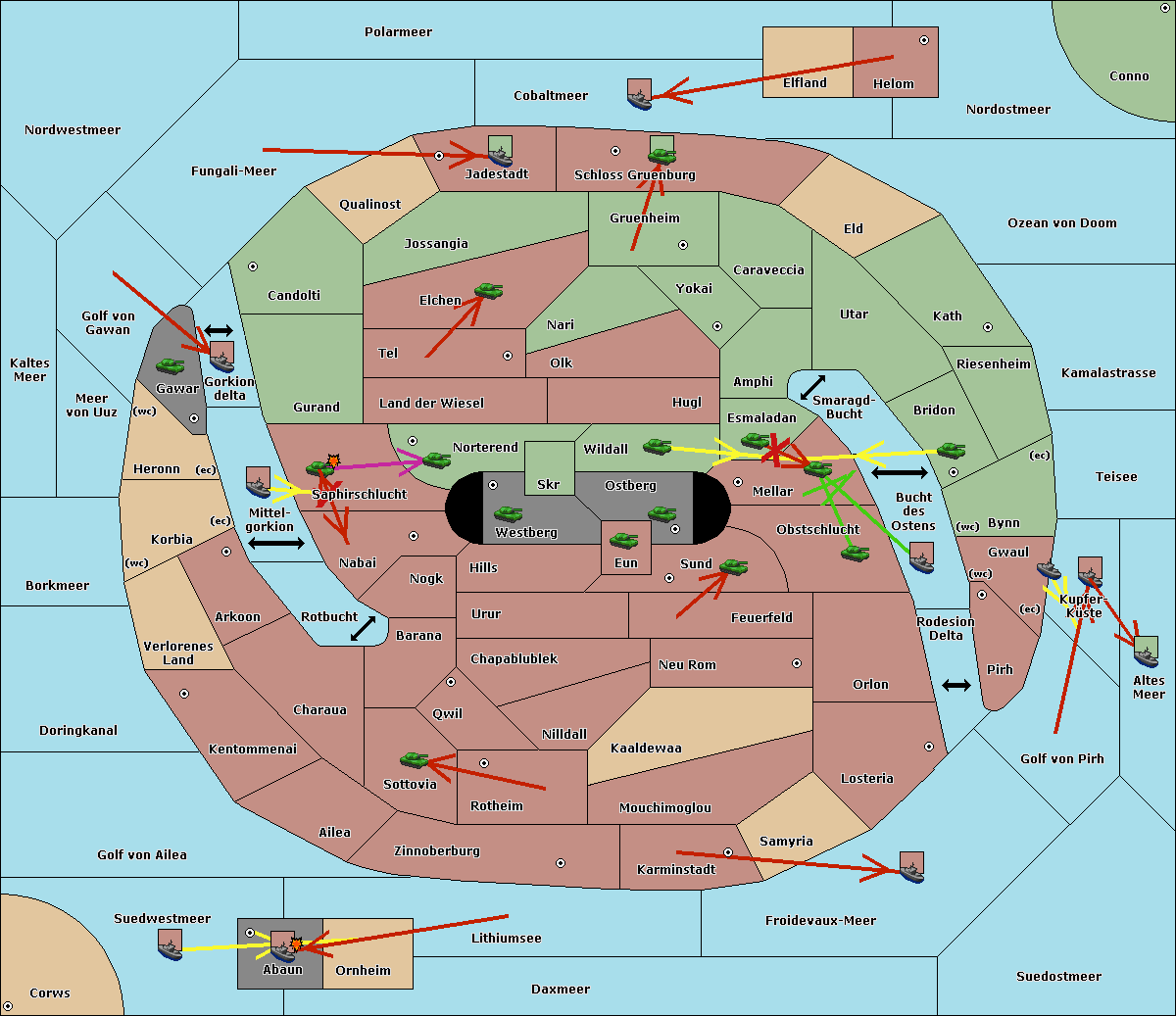 The fleet at Bucht des Ostens support move to Bynn from Zinnoberburg.
