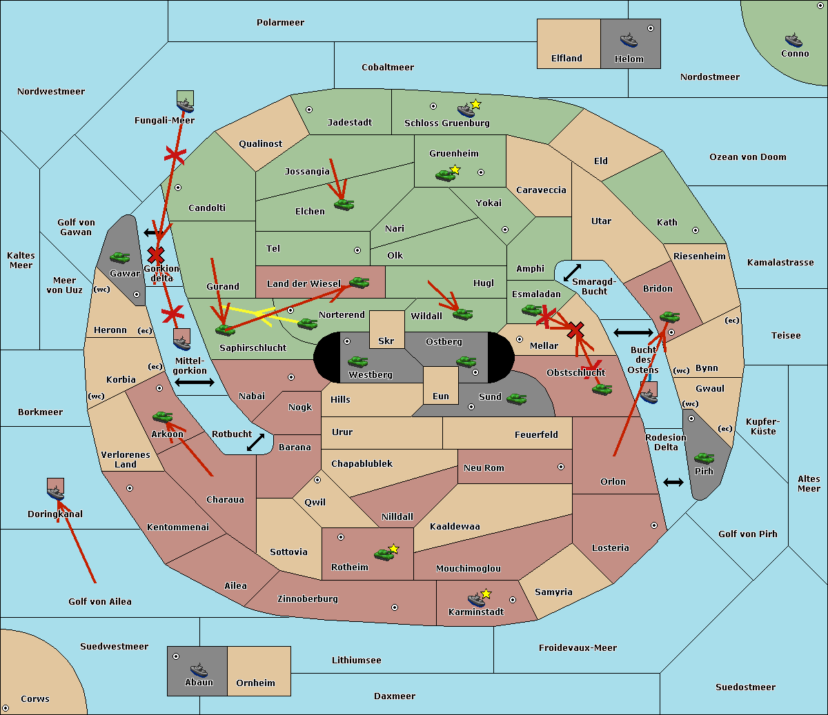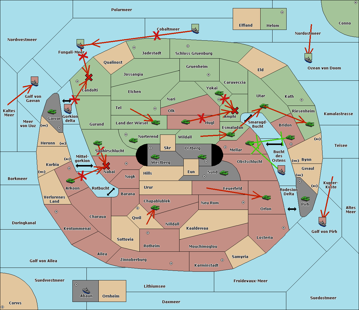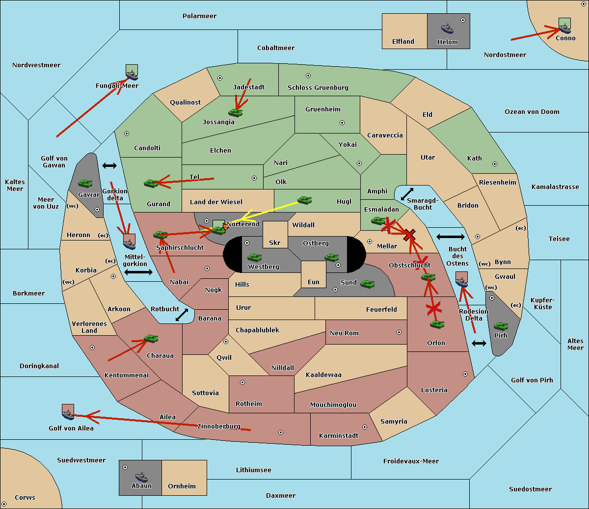 The fleet at Bucht des Ostens support move to Bynn from Zinnoberburg.