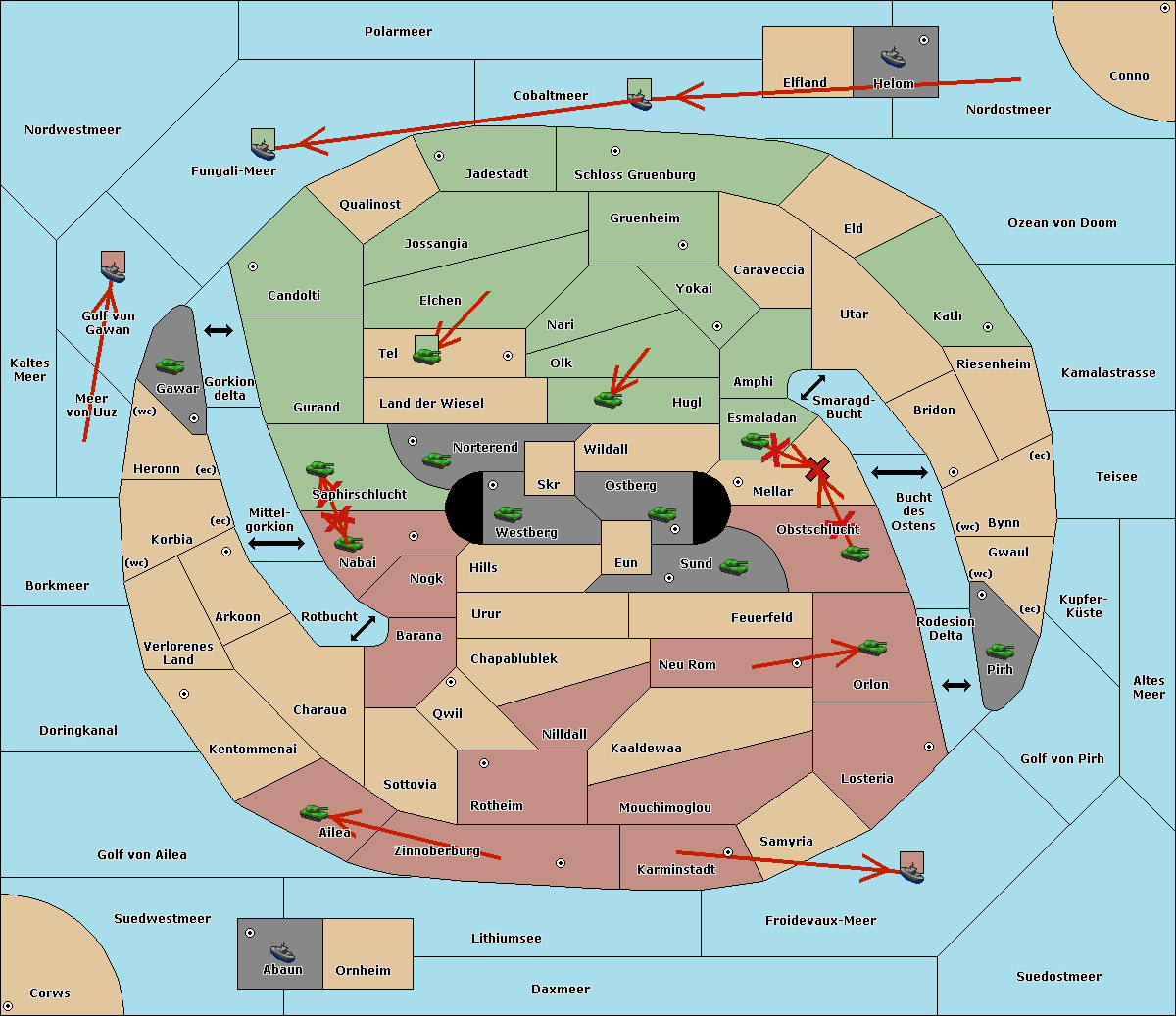 The fleet at Kaltes Meer move to Golf von Gawan.