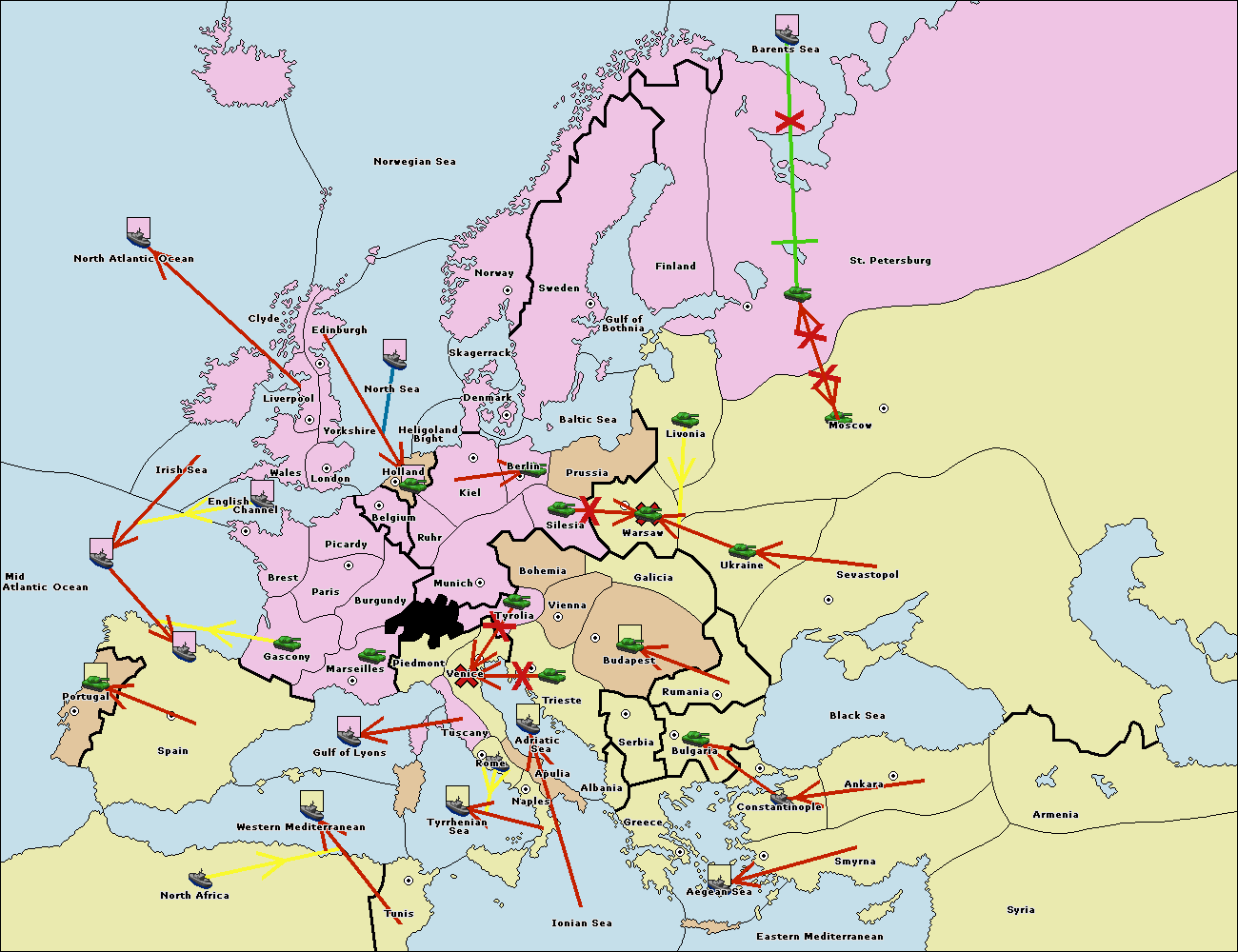 The fleet at Bulgaria (South Coast) move to Greece.