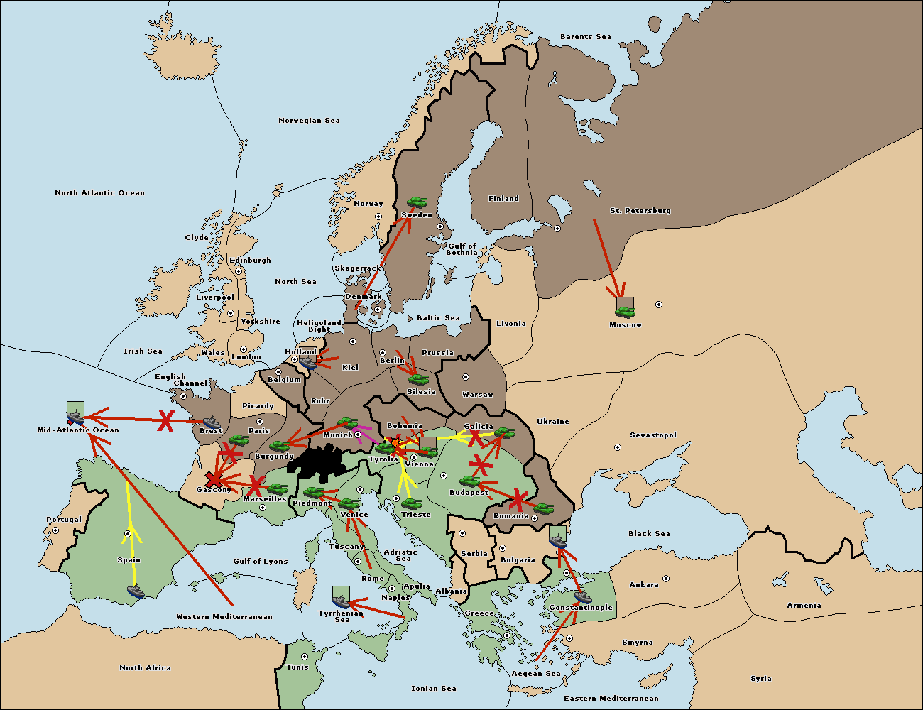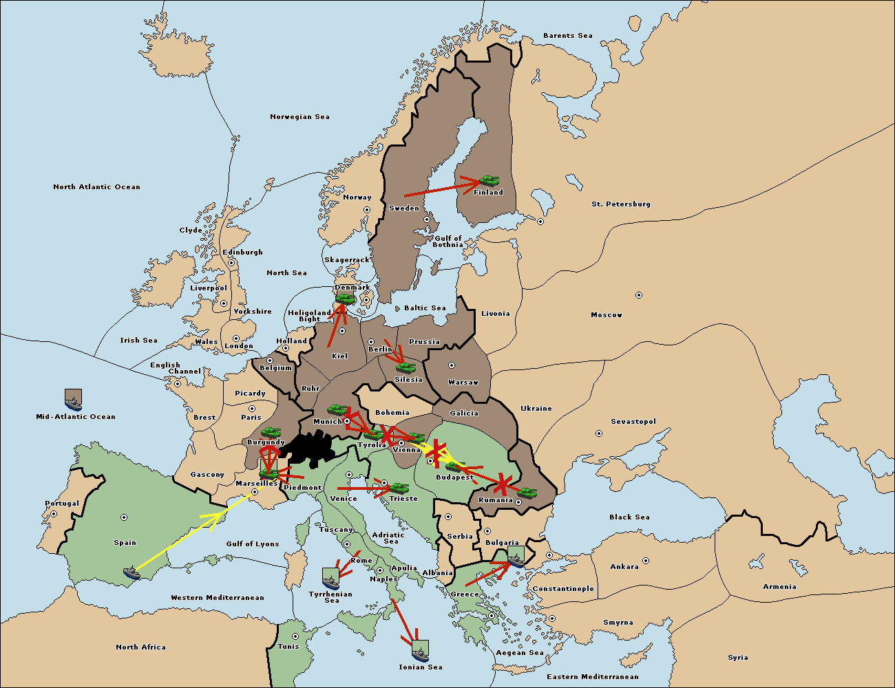 The fleet at Spain (South Coast) support move to Marseilles from Piedmont.