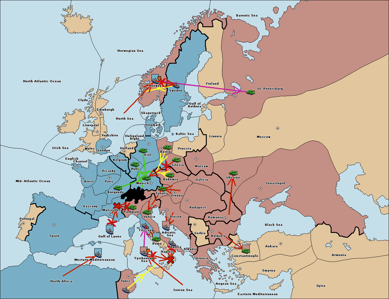 The fleet at Western Mediterranean move to Tyrrhenian Sea.