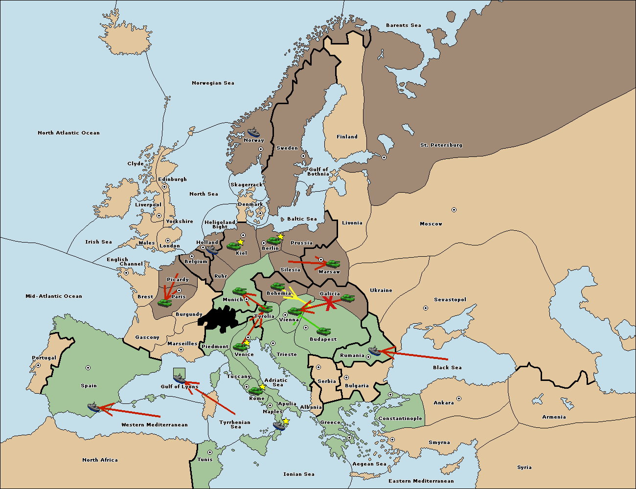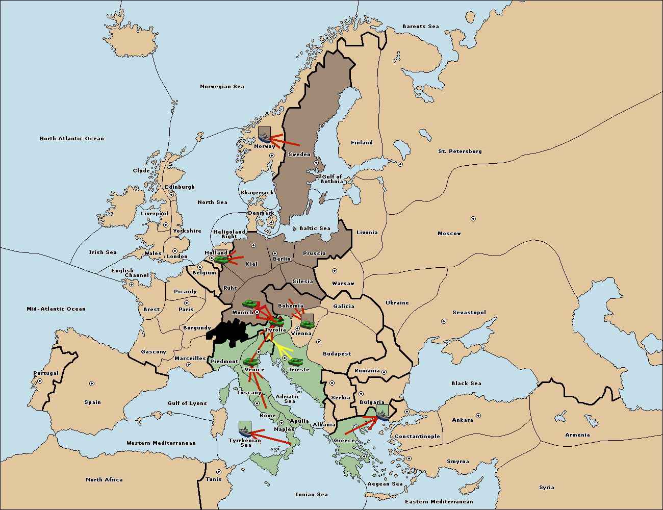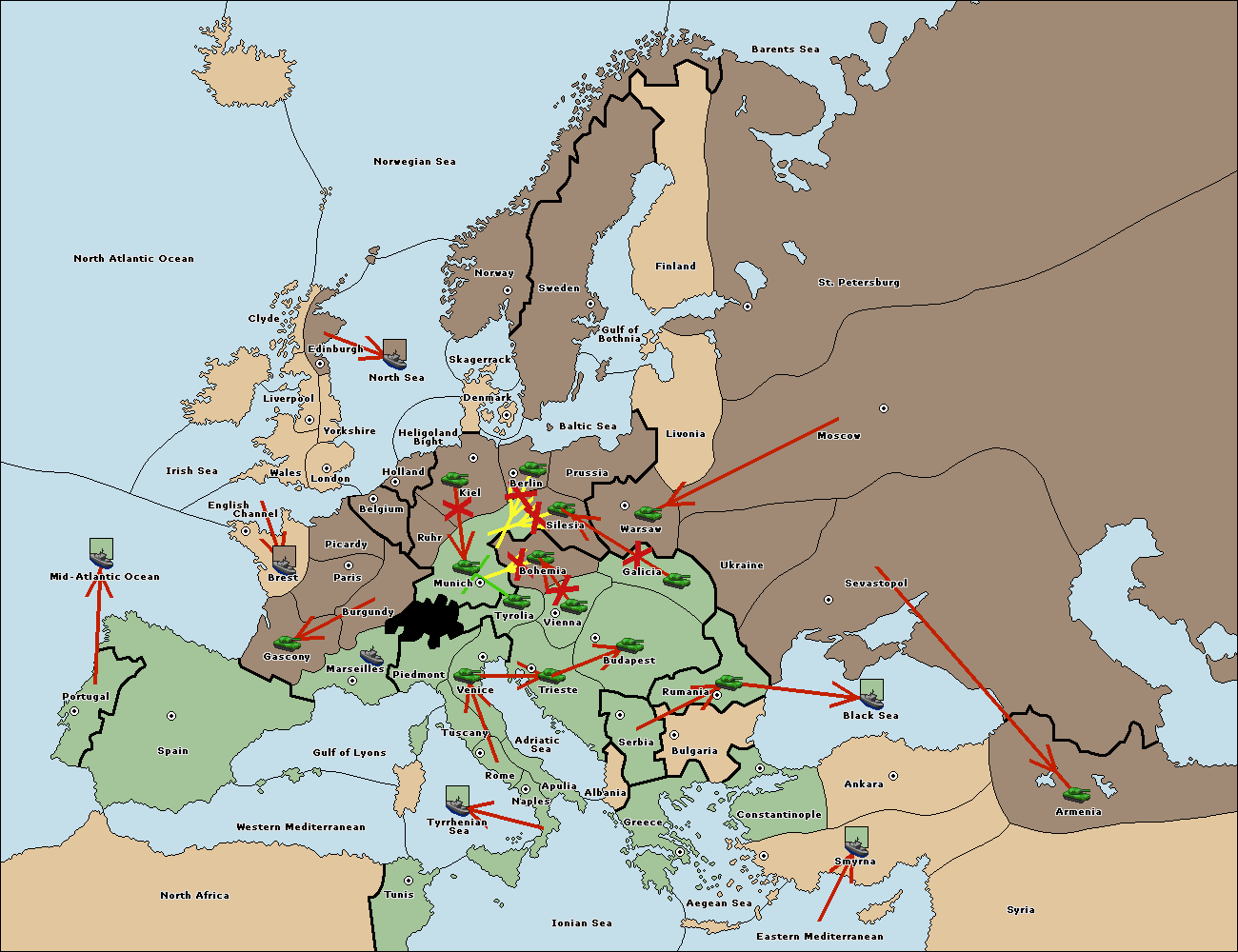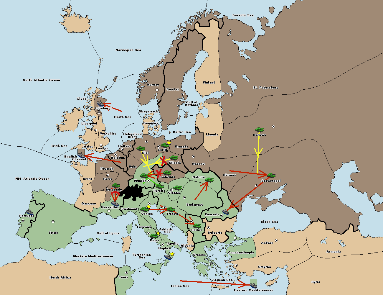 The fleet at Bulgaria (South Coast) move to Constantinople.